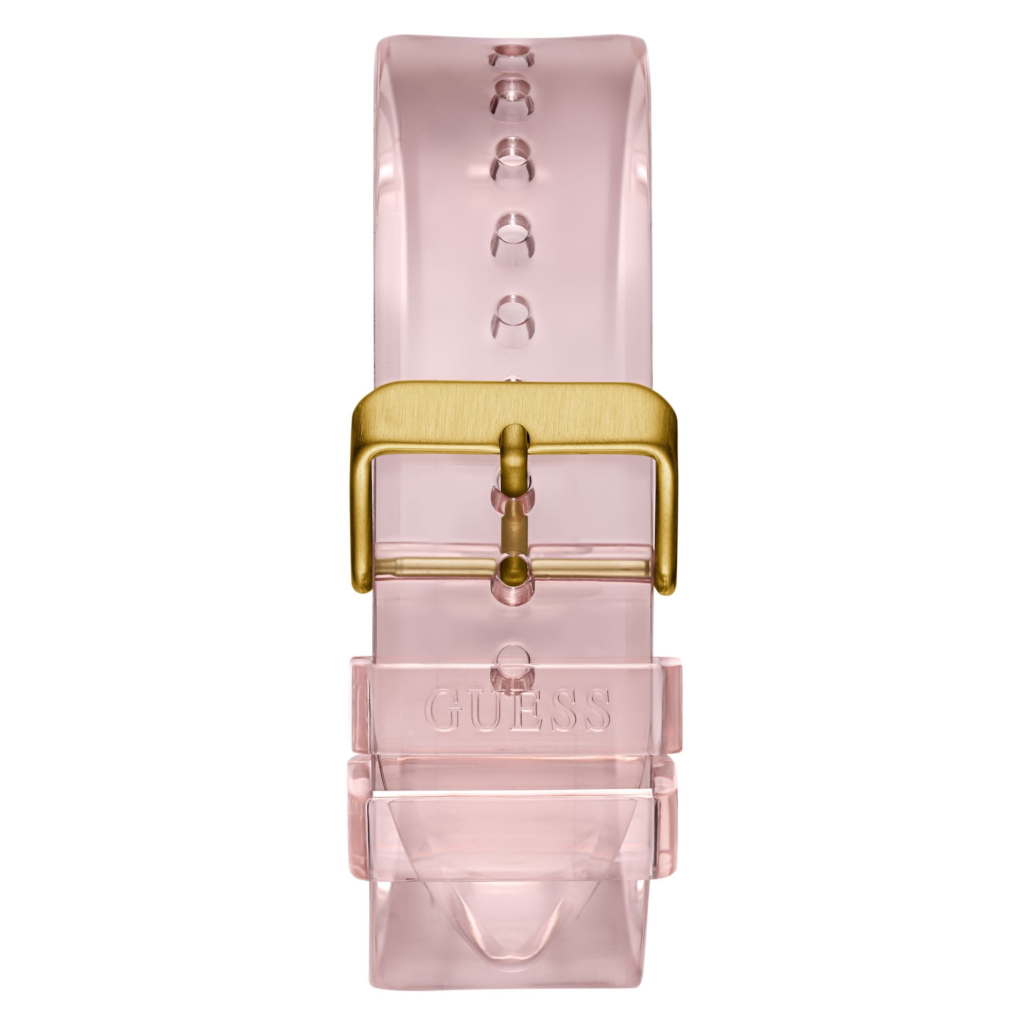 | Armband: | pink / transparentes Kunststoffband ( Bio Based Polyurethane), Breite: ca. 2,4 cm Länge der Uhr: ca. 22,0 cm Dornschließe |