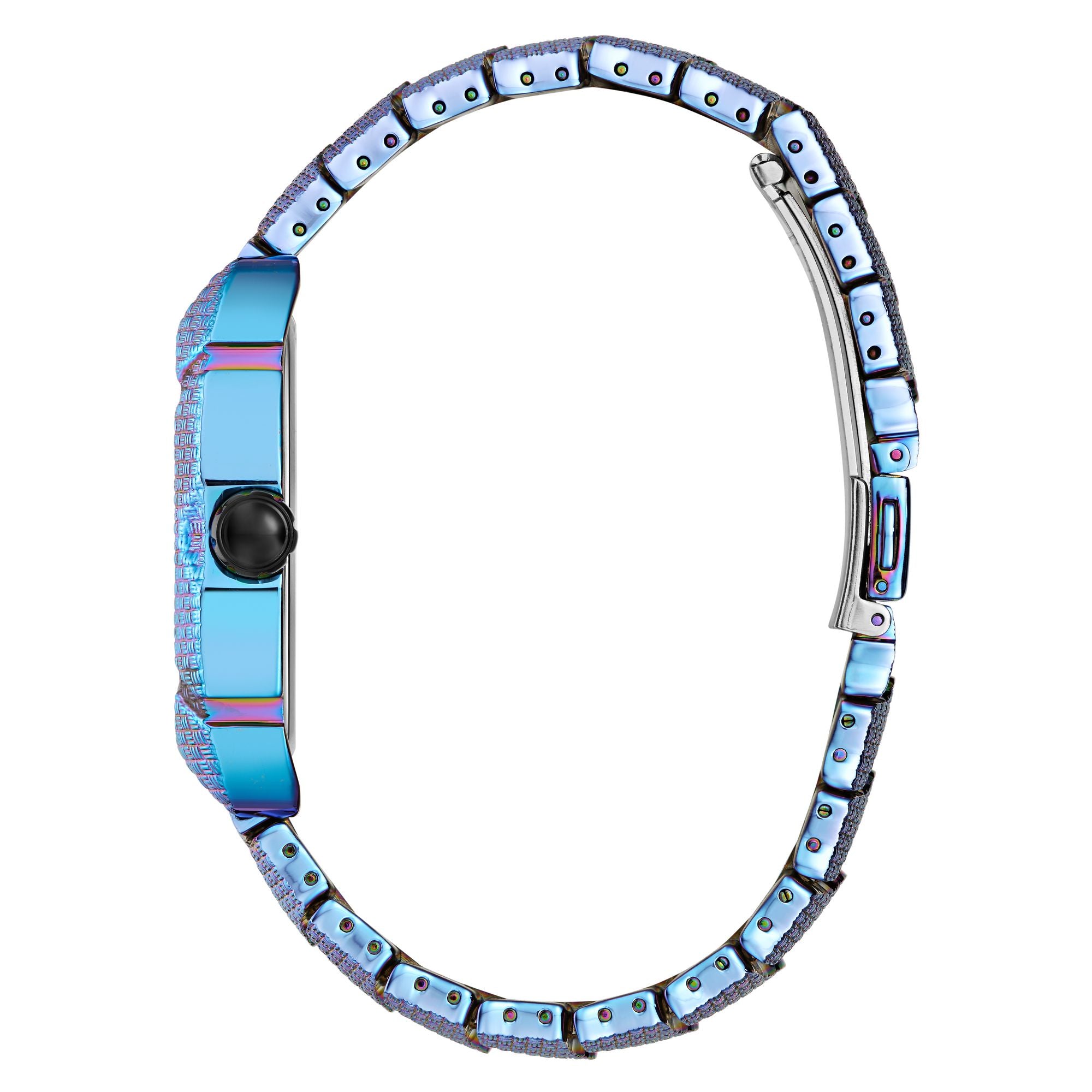 | Armband: | Edelstahlarmband blau, Breite: ca. 2,1 cm Länge der Uhr: ca. 21,0 cm, Faltschließe |