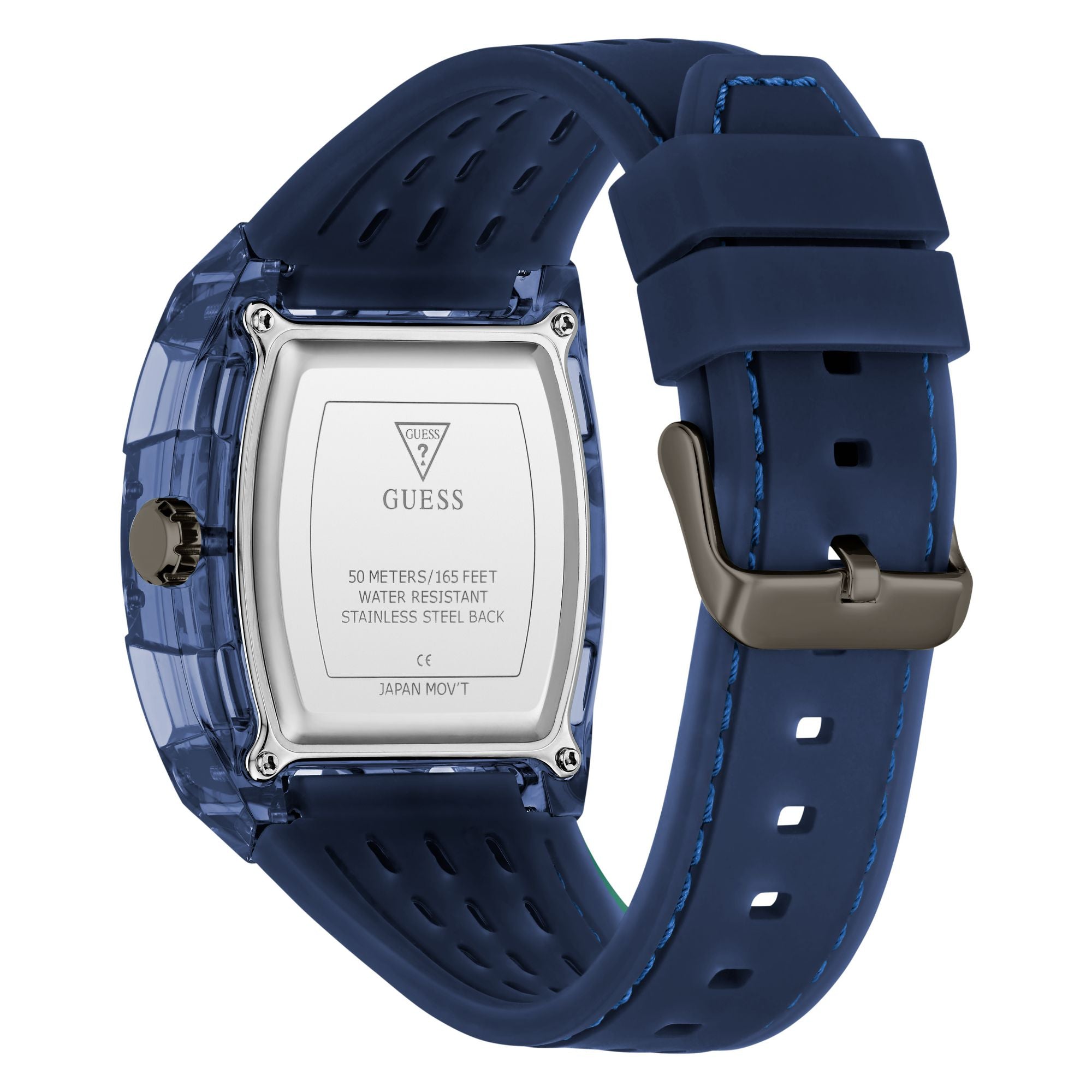 | Armband: | Silikonarmband blau, Breite: ca. 2,0 - 2,8 cm Länge der Uhr: ca. 20,0 cm Dornschließe |