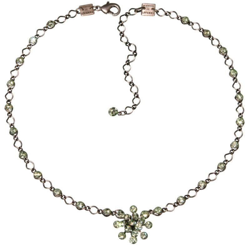 | Material: | Tombak (galvanisiert) - altsilberfarben und antiallergen, Kette verziert mit Kristall Elements Elementen |