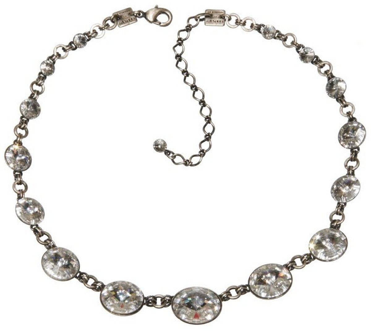 | Material: | Tombak (galvanisiert) - altsilberfarben und antiallergen, Kette verziert mit Kristall Elements Elementen |