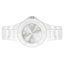 | Armband: | Silikonarmband weiß mit Dornschließe, Breite: ca. 17 mm Länge d.Uhr: ca. 21 cm |