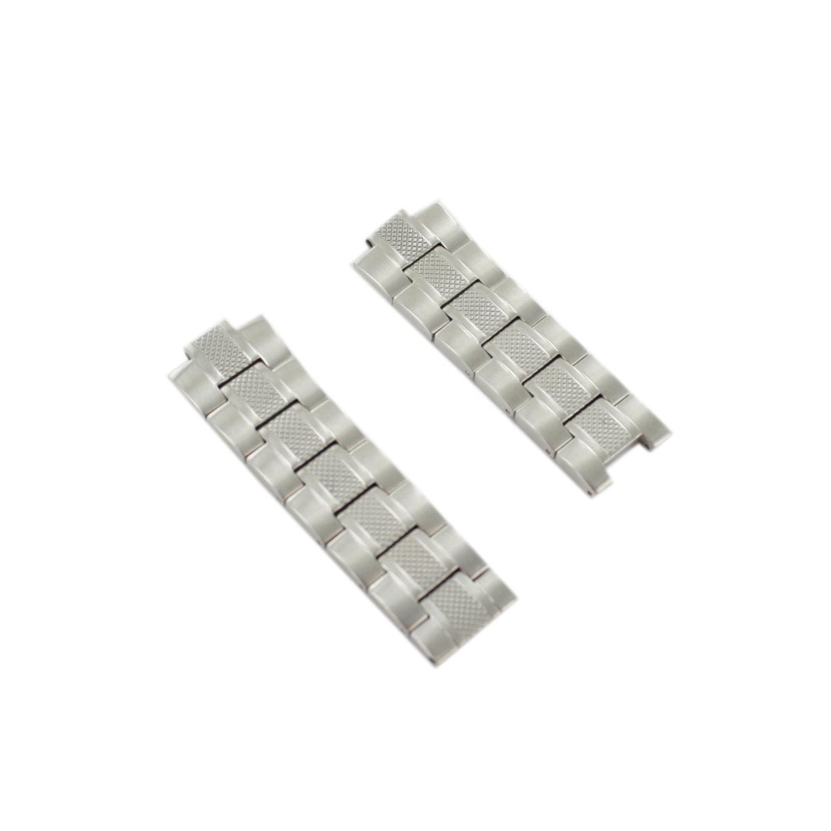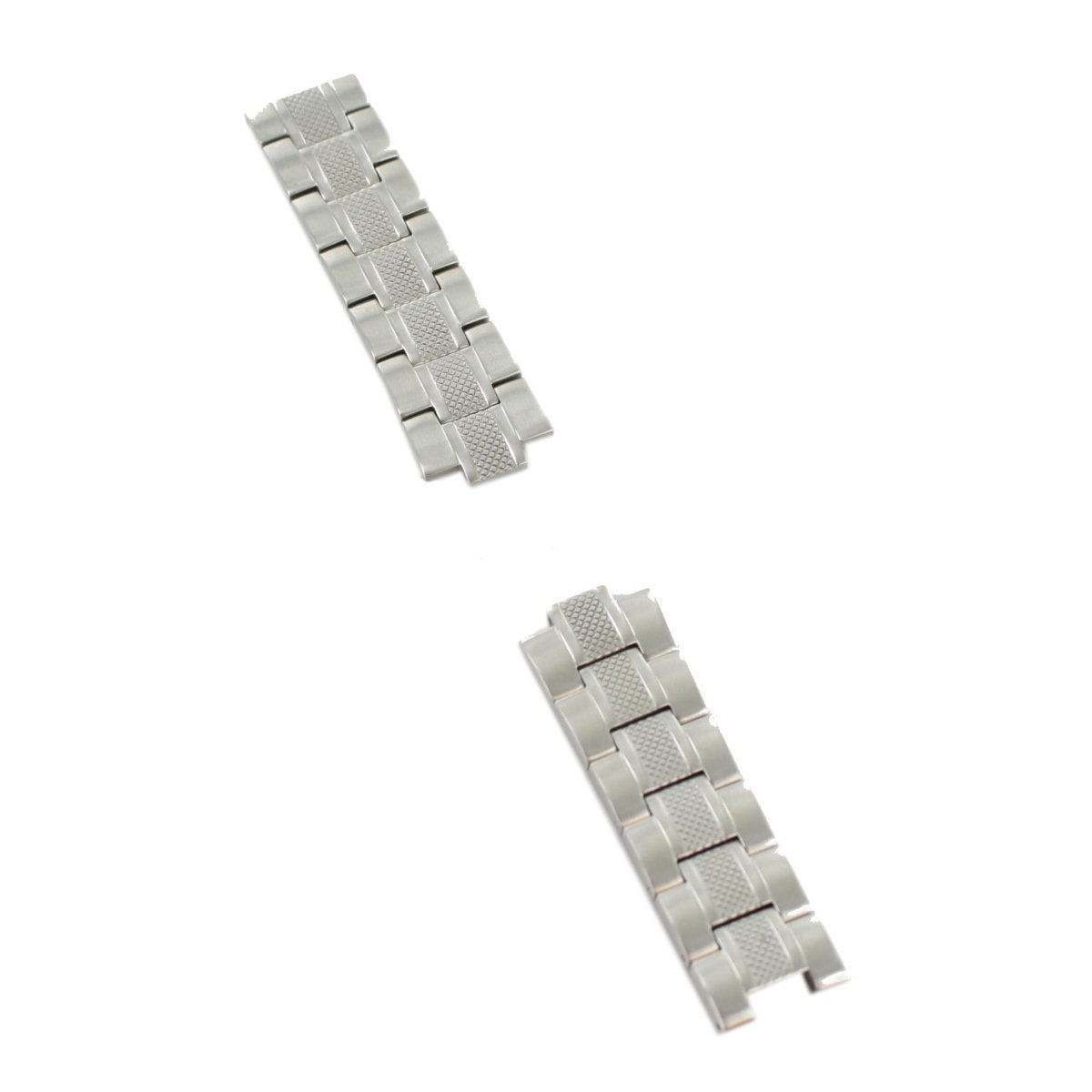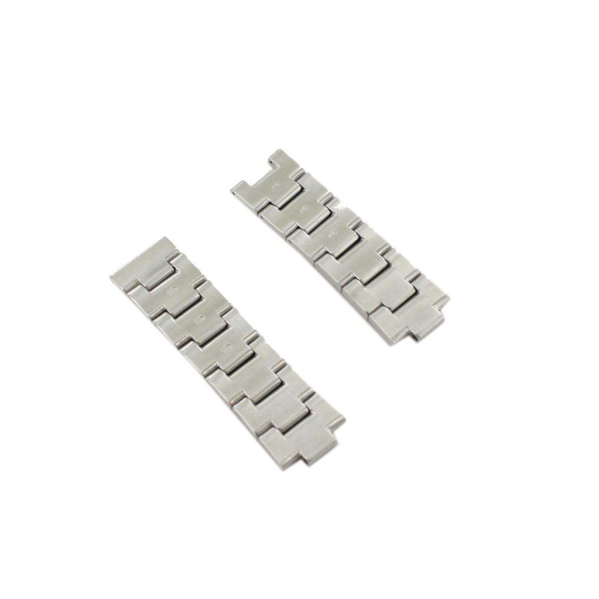 | Maße: | Stegbreite: ca. 22 mm, Bandlänge: ca. 145 mm (70 mm + 75 mm) - ohne Schließe (es können einzelne Gliederentfernt werden) Bandbreite: ca. 20 - 22 mm |