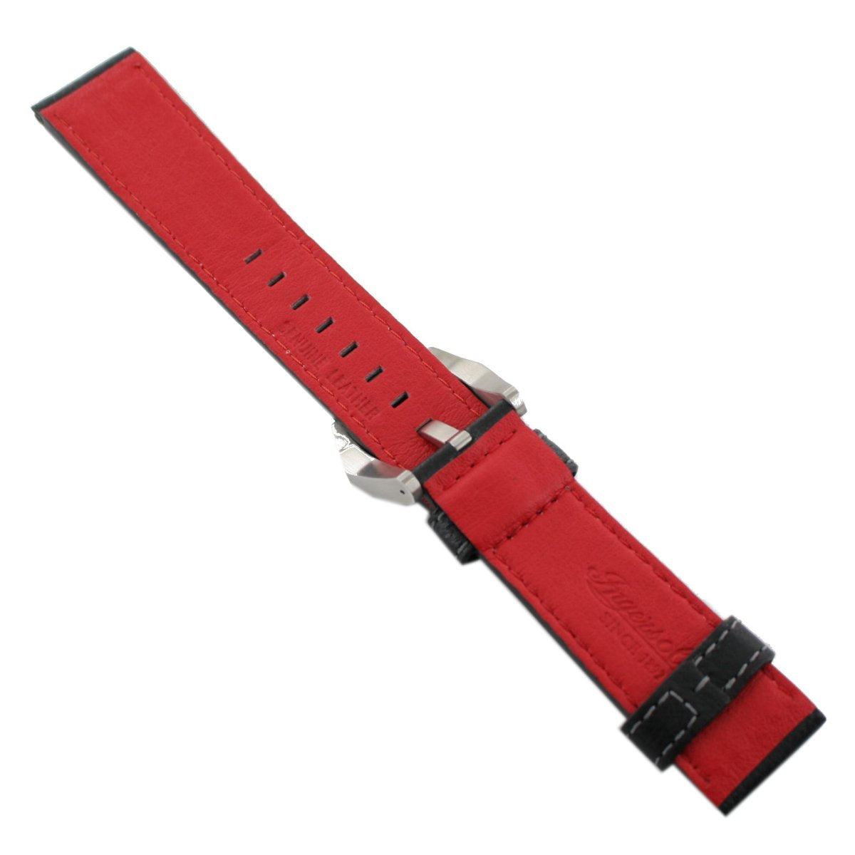 Ingersoll Ersatzband für Uhren Leder sw / rot Naht blau Dornschließe 24 mm