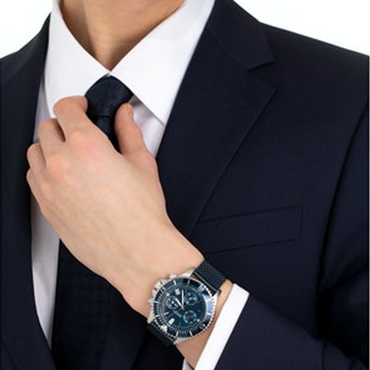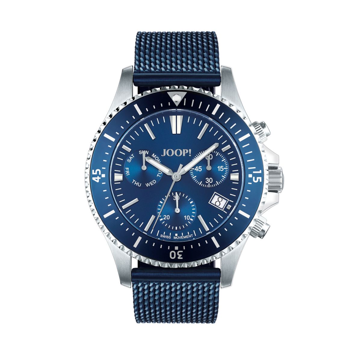Milanaise Armband und überzeugt mit verschiedenen Blautönen auf dem Ziffernblatt, das eine Tages- und Datumsanzeige bietet. Das modische Band kann mit einem handlichen Schiebeverschluss geöffnet und geschlossen sowie auch einfach verstellt werden. Highlight für Kenner: Die Seite des Gehäuses ist mit einem gut leserlichen JOOP!-Schriftzug graviert. Alle Uhren von JOOP! sind mit einem originalen Schweizer Quarzwerk des Herstellers Ronda ausgestattet, das mit Batteriebetrieb arbeitet. Die Uhr besitzt eine Wasserdichte von bis zu 20 Bar und kann daher zum Schwimmen und Schnorcheln getragen werden. Das Ziffernblatt wird durch ein flaches Mineralglas vor Kratzern geschützt. Alle JOOP! Accessoires werden inklusive einer passenden Schatulle geliefert und eignen sich daher auch ideal als Geschenk.