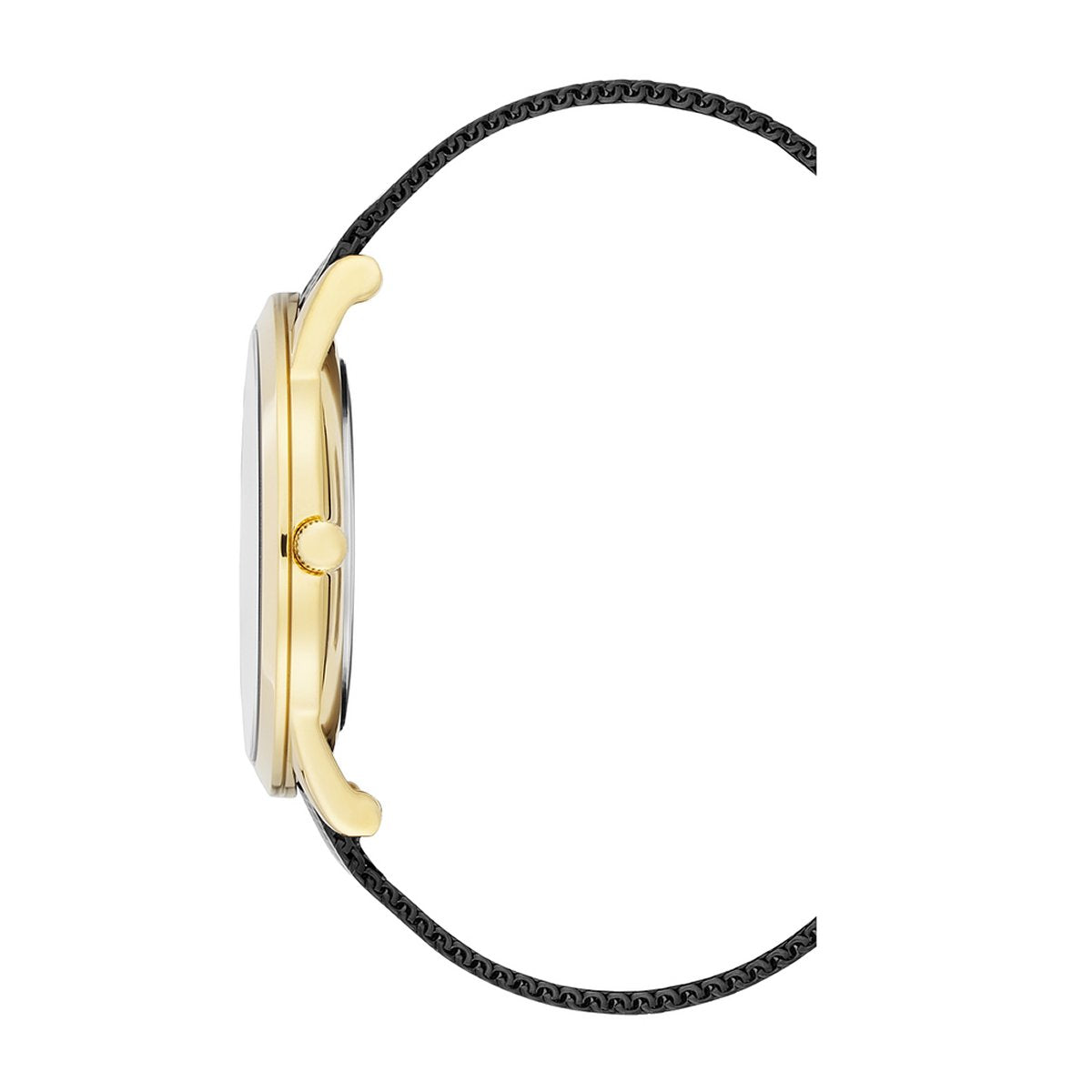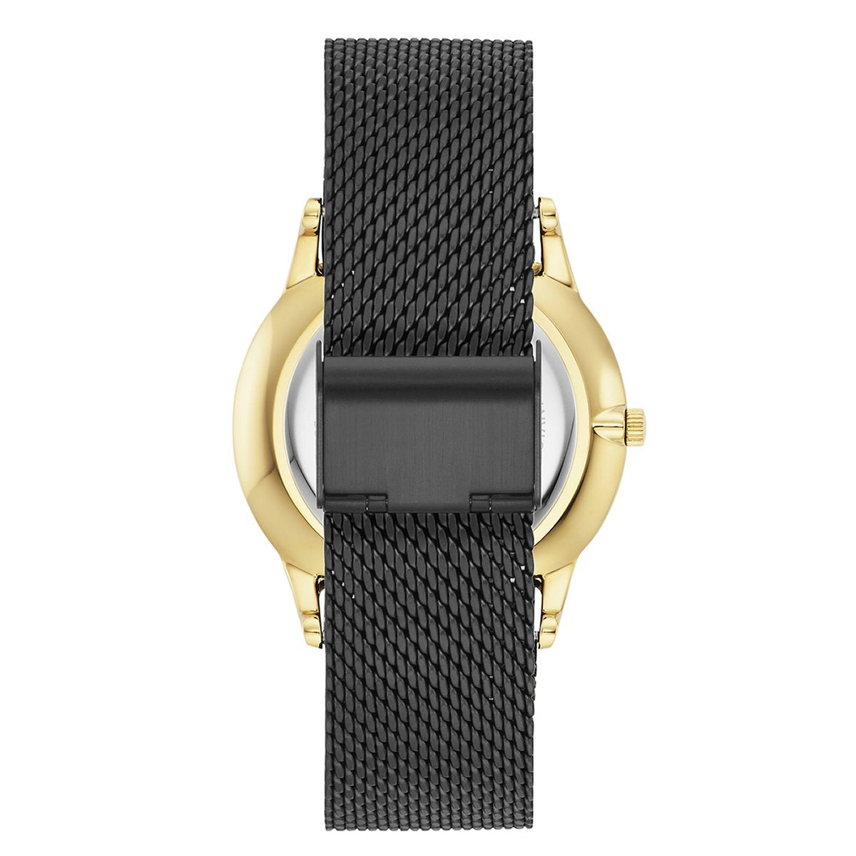 | Armband: | Edelstahlarmband schwarz, Breite: ca. 2,1 cm Länge der Uhr: ca. 23,5 cm Faltschließe |