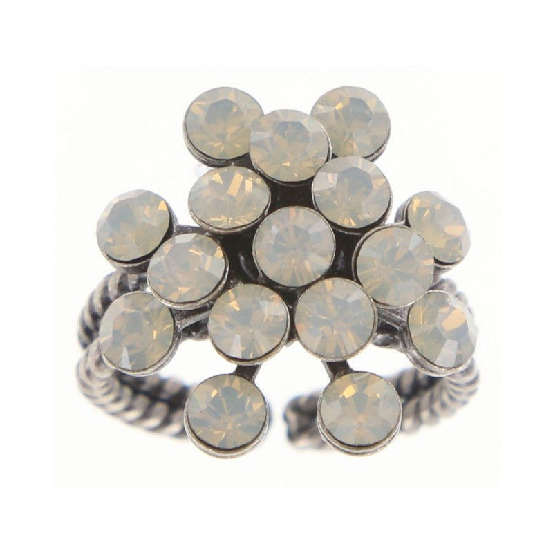 Material: | Tombak (galvanisiert) - altsilberfarben und antiallergen, Ring verziert mit Kristall Elements Elementen (16 Steine /je ca. 3 mm Durchmesser) |
