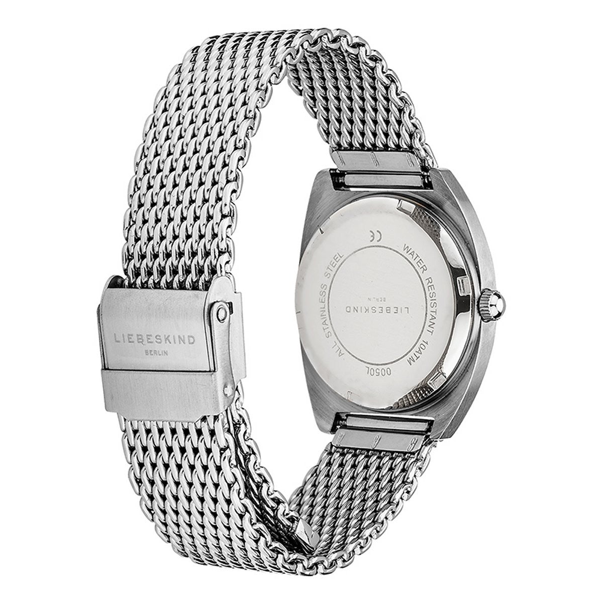Die Milanaisebänder aus hochwertigem Edelstahl im angesagten Retrolook ergänzen das cleane Design der Mesh-Serie. Veredelt wird das mattierte silberne Gehäuse mit einer polierten Lünette. Ein silberfarbenes es Zifferblatt mit edlem LIEBESKIND Berlin Logo wurde eigens für die LIEBESKIND Berlin Uhr entworfen. Zusätzlich ist das Logo auf dem Gehäuseboden und der Schließe platziert. Ausgestattet mit hochwertigen Materialien, wie teilmattem Stahl, Mineralglas, Quarzwerk sowie einer Wasserdichtigkeit bis zu 10 ATM lässt das Modell keine Wünsche offen. Cool und lässig wie die Marke LIEBESKIND Berlin selbst – ist die LIEBESKIND Uhr ein echtes Statement am Handgelenk. Des Weiteren finden sich in der Kollektion Modelle mit Lederarmbändern aus LIEBESKIND Leder - unter anderem Brand New Snake, Nubuk und Vegetable.