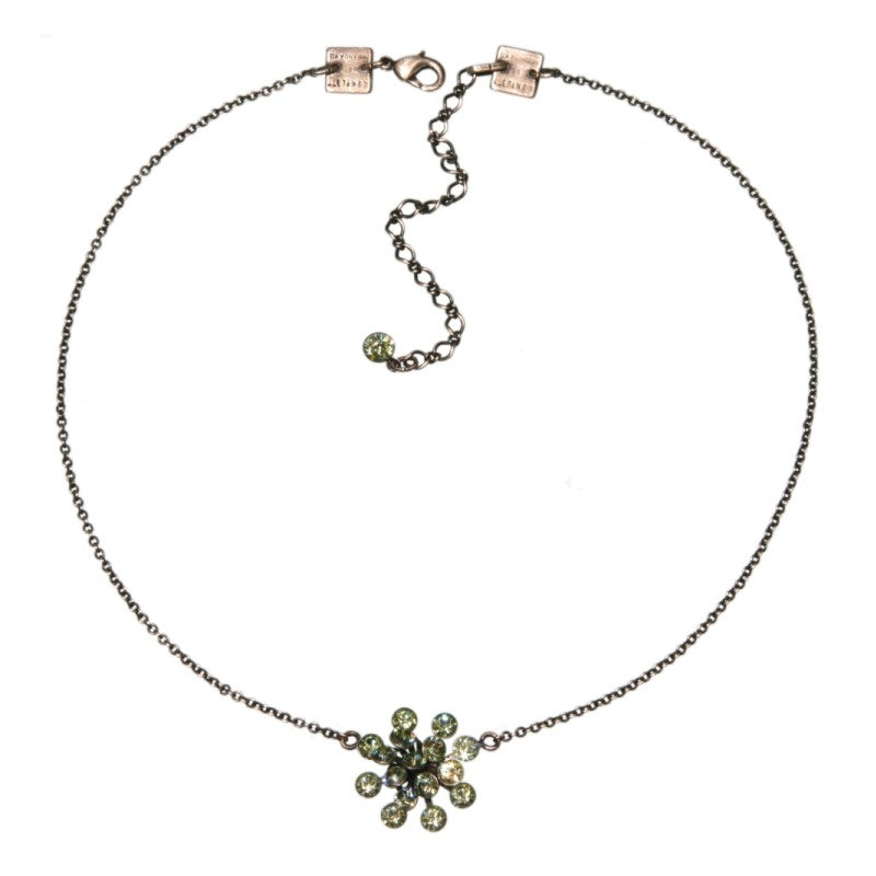 | Material: | Tombak (galvanisiert) - altsilberfarben und antiallergen, Kette verziert mit Kristall Elements Elementen |