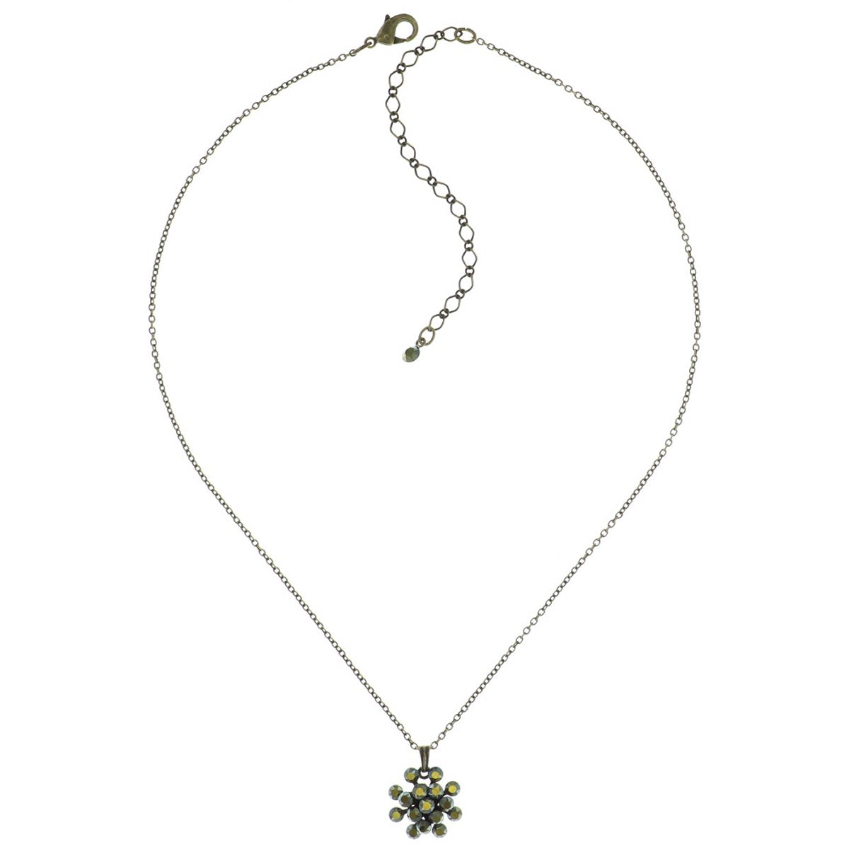 | Material: | Tombak (messing galvanisiert) - antikmessing und antiallergen, Kette verziert mit Kristall Elementen, Anhänger besteht aus 16 Steine /je ca. 3 mm Durchmesser |