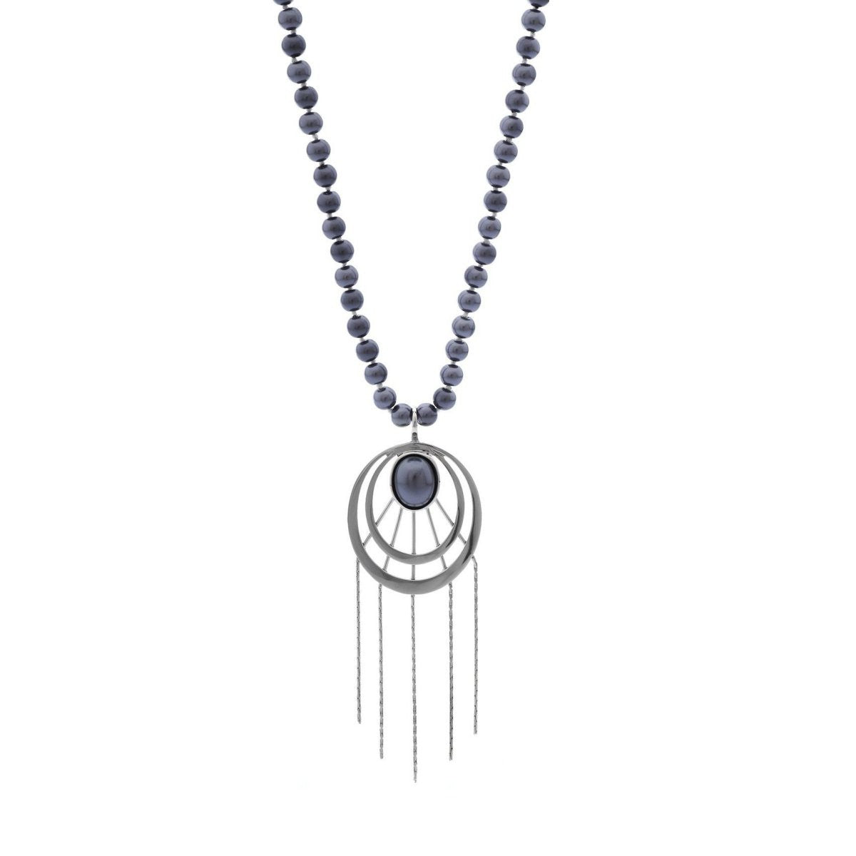 Material: Damen Kette / Collier aus  925 Sterlingsilber mit synt. grauen Perlen verziert