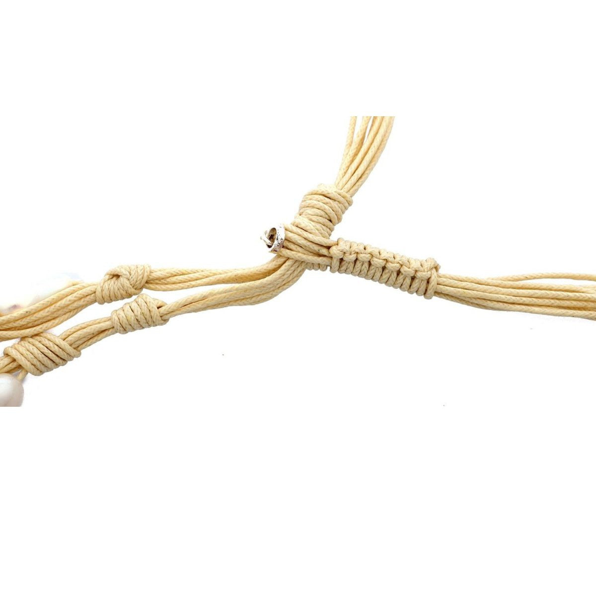 Material: Damen Kette / Collier aus Textilband mit Süßwasser-Zuchtperle verziert