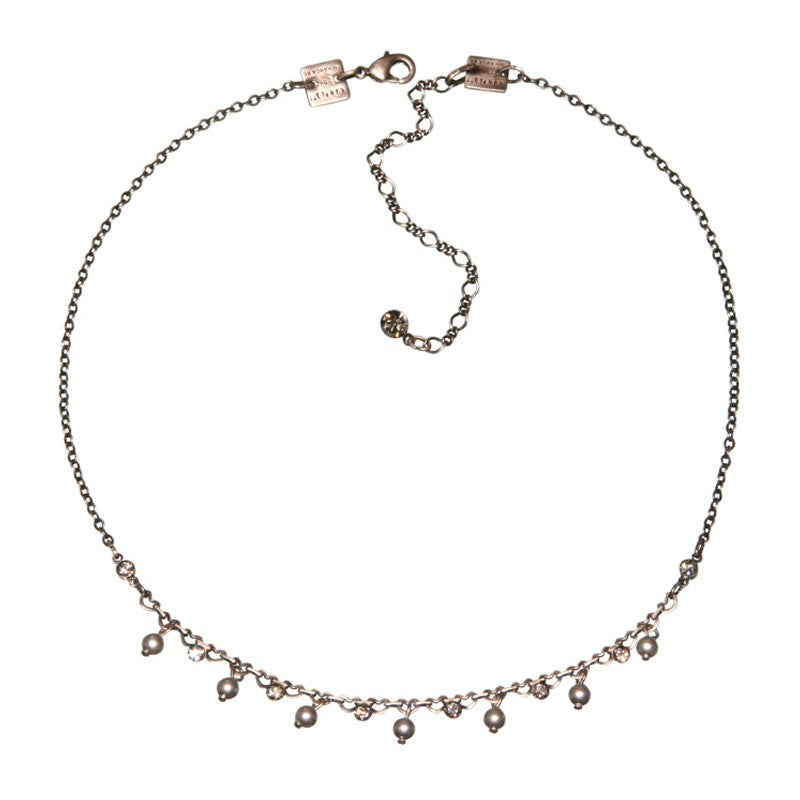 | Material: | Tombak (galvanisiert) - altsilberfarben und antiallergen, Kette verziert mit Kunstperlen und Kristall Elements Elementen |