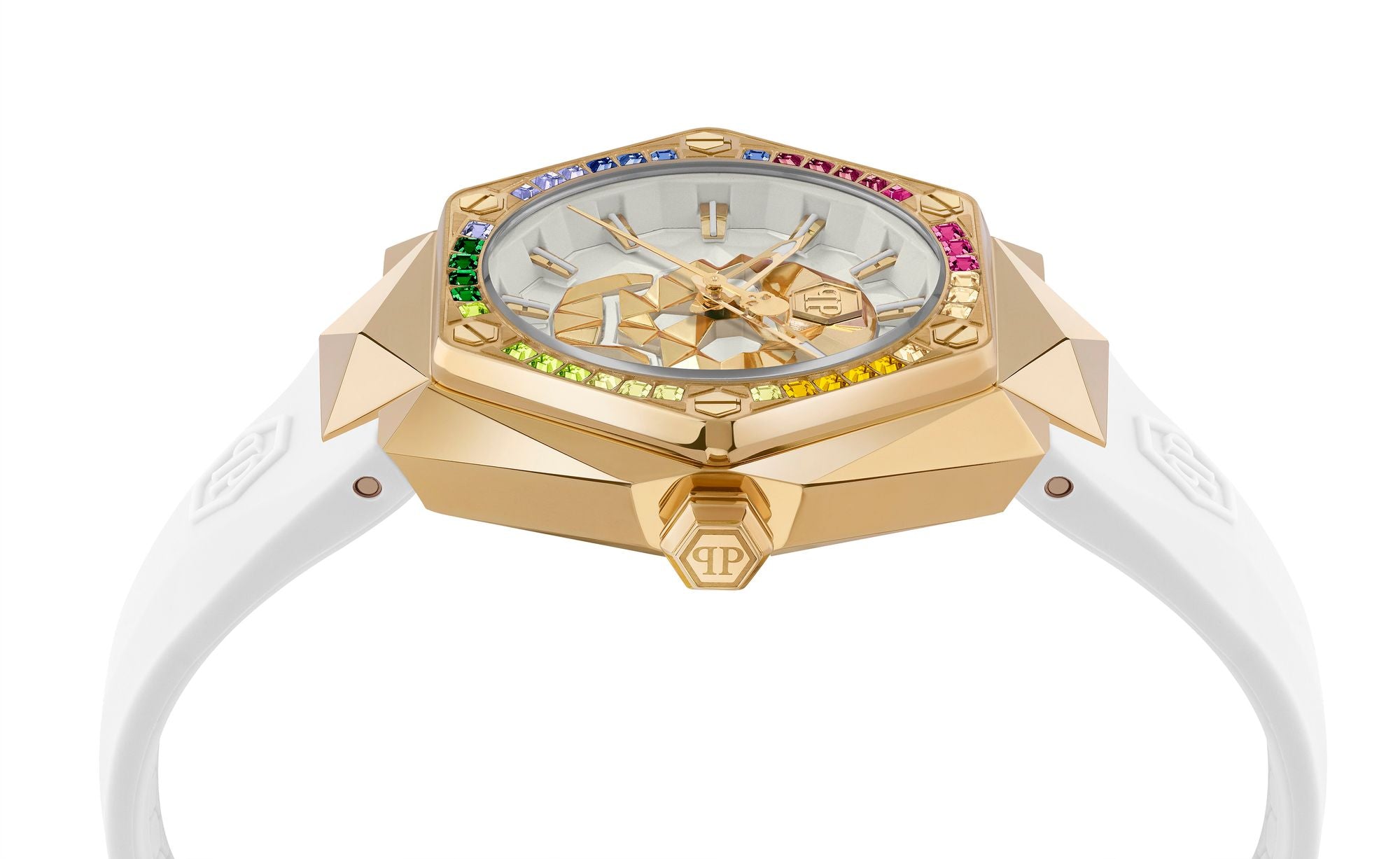 | Info: | Philipp Plein hat sicherlich verstanden, dass Weiblichkeit wild sein kann und dass die elegantesten Momente oft aus den mutigsten Taten entstehen. Daher hat die Skull Spikes mit ihrem auffälligen Design die Macht, jedermanns Aufmerksamkeit zu erregen. Ihr Zifferblatt ist mit einem ikonischen und unverwechselbaren Totenkopfmotiv verziert, einem Symbol des Widerstands gegen das Gewöhnliche. Sie stellt alle üblichen Konventionen in Frage und ist für die moderne Frau entworfen, die ihren mutigen Geist ausleben und gleichzeitig eine Aura modischer Coolness ausstrahlen möchte. |