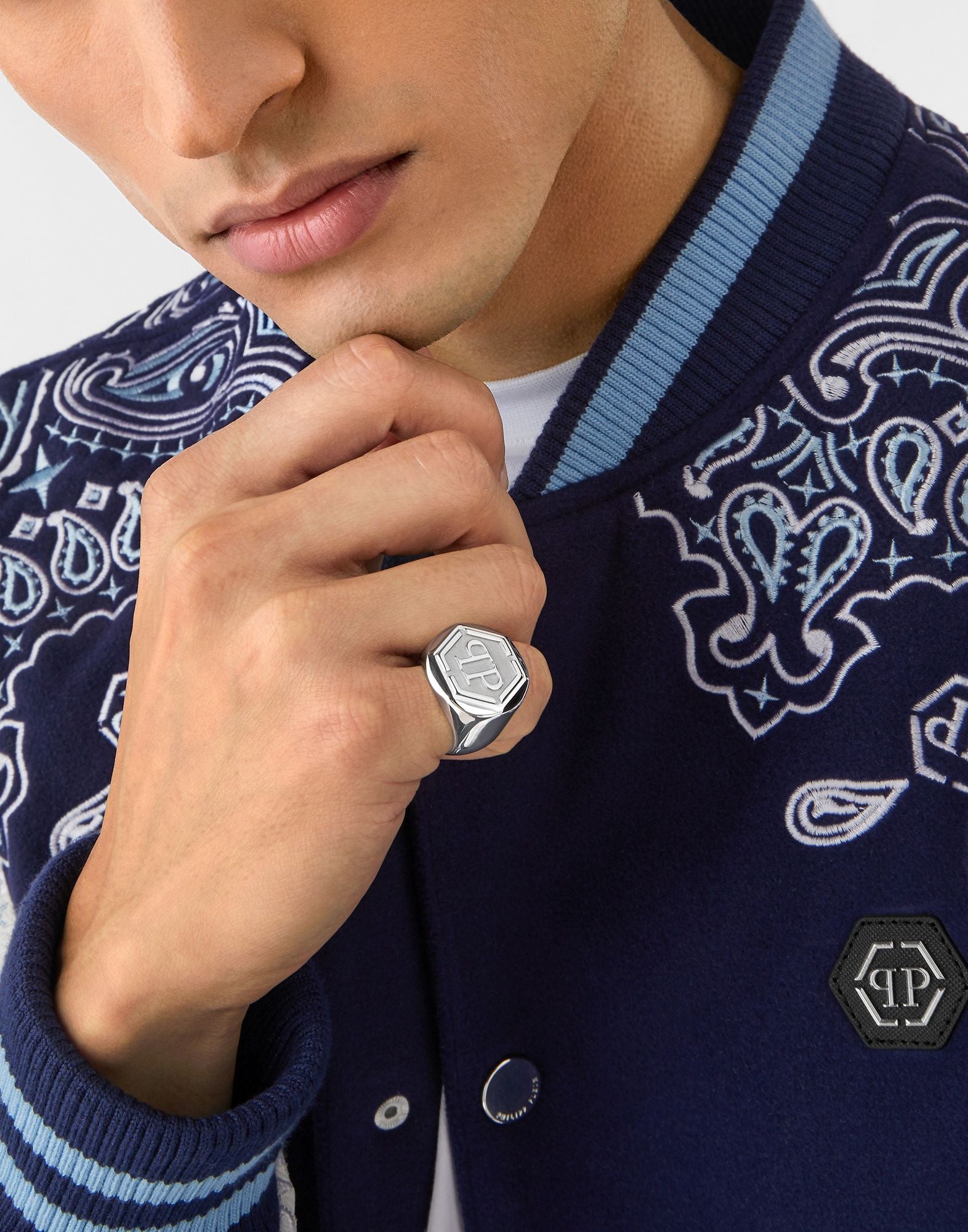 | Material: | Herren Ring aus Edelstahl, mit PP Logo |