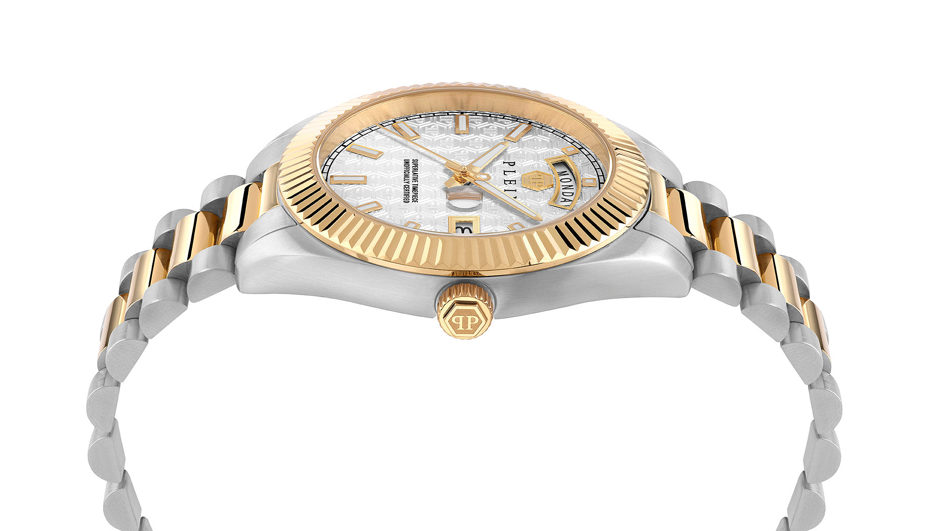 | Info: | Philipp Plein interpretiert die Linie Date Superlative für seine maskuline Kundschaft. Dieser Zeitmesser strahlt Größe und Stärke aus und ist unübertroffen. Jeder Tag hat das Potenzial, einen unauslöschlichen Eindruck in unserem Leben zu hinterlassen und den Funken neuer Sehnsüchte zu entfachen.