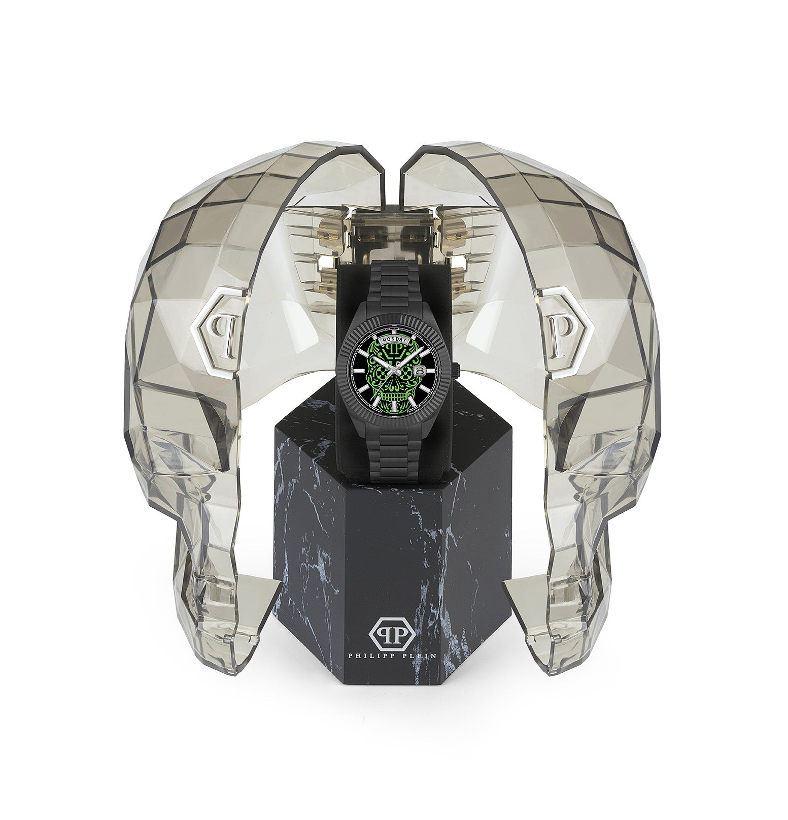 Philipp Plein interpretiert die Linie Date Superlative für seine maskuline Kundschaft. Dieser Zeitmesser strahlt Größe und Stärke aus und ist unübertroffen.