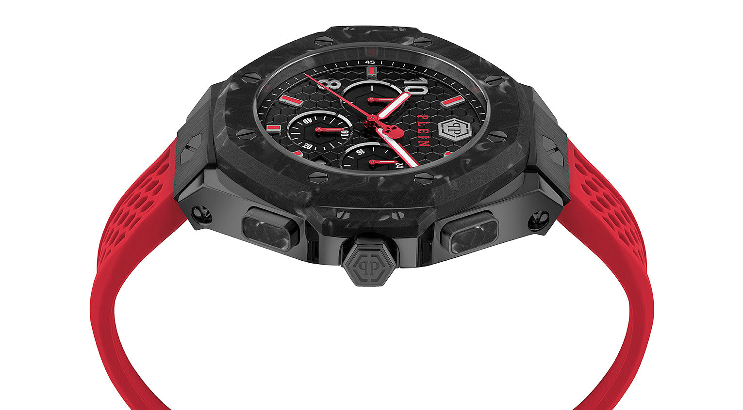 | Info: | Disruptiv, kreativ und technisch. Das Sechseckmuster auf dem Zifferblatt und die sechseckigen Schrauben erinnern an die Größe der Philipp-Plein-Ikone. Mit dieser neuen, illustren Linie begeistert Philipp Plein die Uhrenindustrie mit seinem unverwechselbaren Stil. |