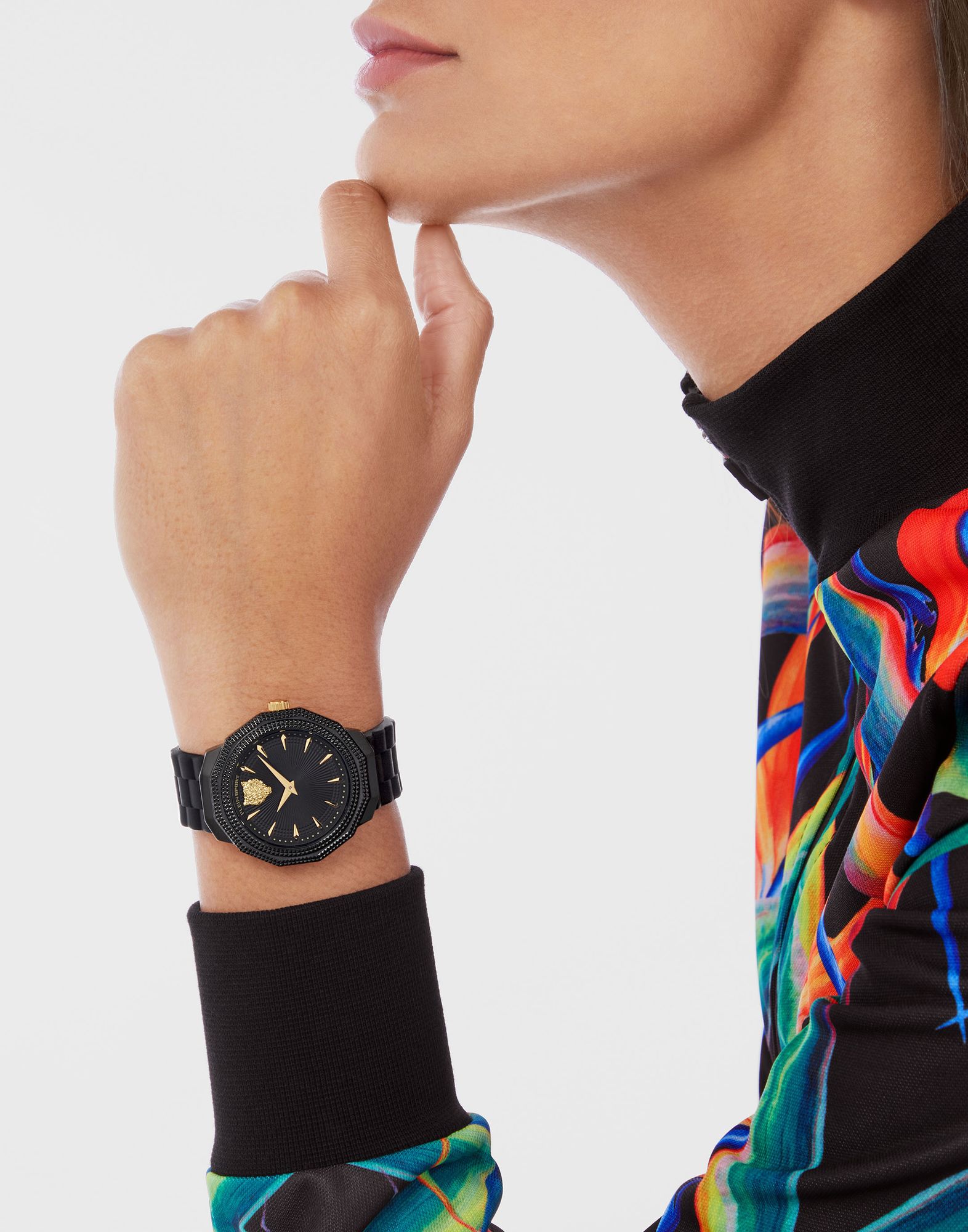 | Gehäuse: | Edelstahlgehäuse IP schwarz, Lünette IP schwarz, Durchmesser : ca. 3,7 cm, Stärke: ca. 0,81 cm, Gewicht: ca. 45 Gramm |