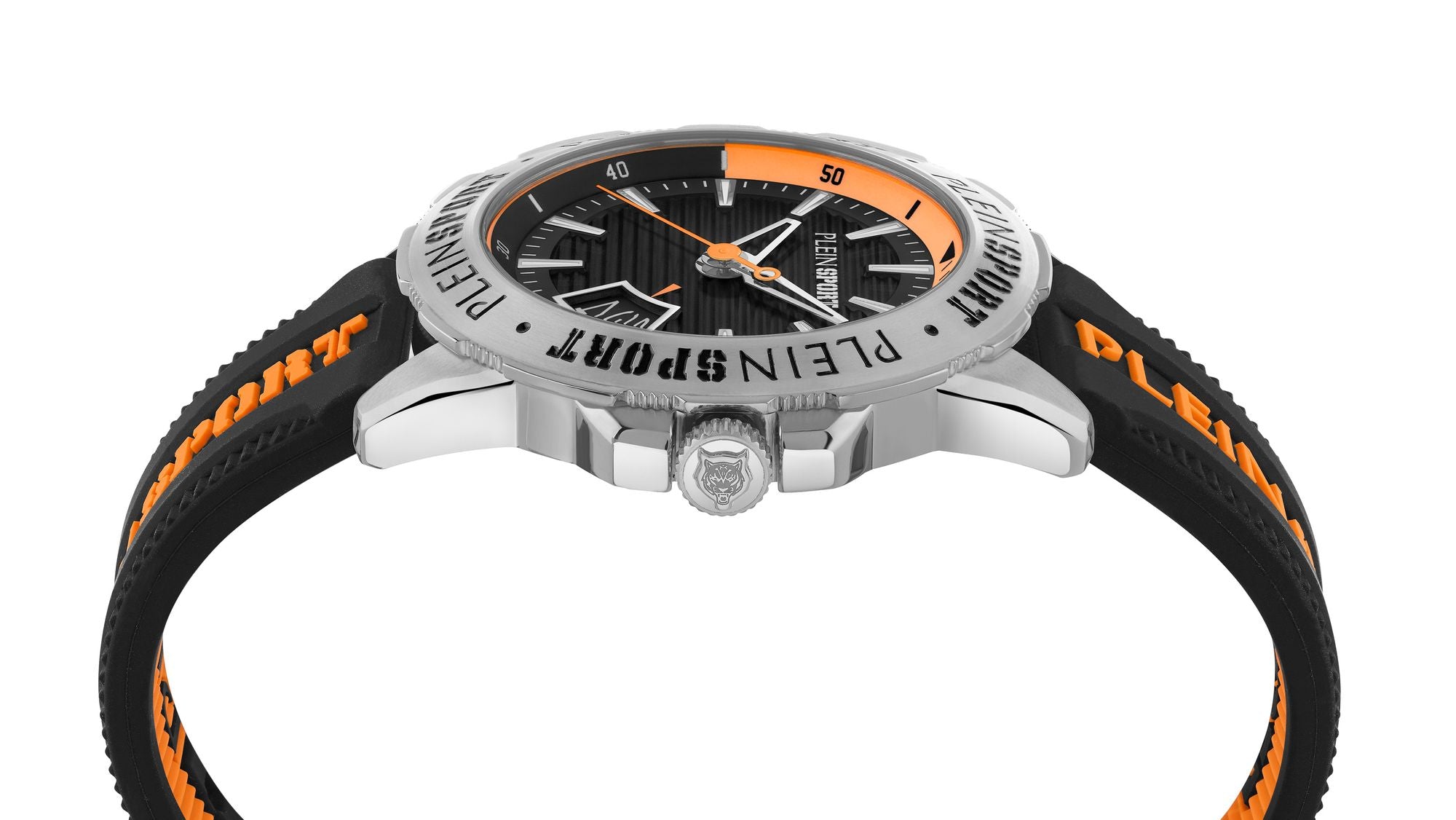RAMPAGE, wo Wildheit auf die kühnste Art und Weise auf Stil trifft. Der charakteristische Tigerkopf auf der Krone verkörpert den ungezähmten Geist, der die Leidenschaft für Sport und Abenteuer antreibt. Der farbige Innenring, der perfekt zum ikonischen Plein Sport-Logo auf dem Silikonarmband passt, schreit Trotz und Dominanz. Spüren Sie, wie das Adrenalin durch Ihre Adern pumpt, denn die starke Marken-DNA ist sorgfältig in jedes Detail dieser Uhr eingraviert. Vom unverwechselbaren Logo auf den Schlaufen bis zum unnachgiebigen oberen Ring wissen Sie, dass Sie ein Meisterwerk sportlicher Extravaganz tragen.