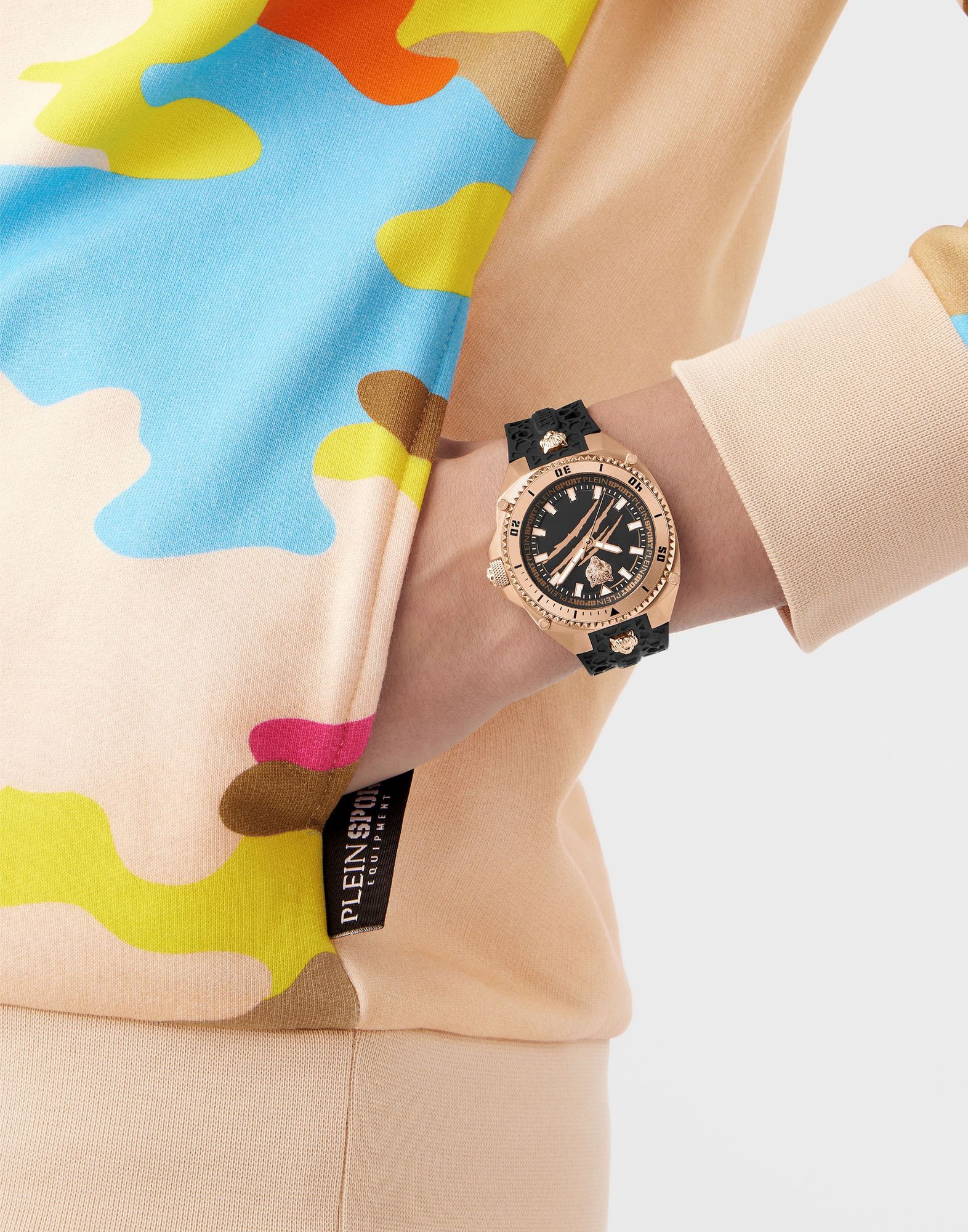 | Info: | Erleben Sie den Inbegriff von Stil und Sportlichkeit mit dem Plein Sport Thunder Force. Dieser Zeitmesser vereint die Welt der Mode und der Hochleistungszeitmessung und ist ein wahrer Beweis für die unerbittliche Leidenschaft des modernen Mannes oder der modernen Frau für Eleganz und Sportlichkeit. Das Kissengehäuse weist die charakteristischen Elemente der Marke auf, wie das Kratzdetail in der Mitte des Zifferblatts und den majestätischen Tigerkopf bei 12 Uhr. Lassen Sie Ihre Leidenschaft durch jedes Ticken des Sekundenzeigers strahlen. |
