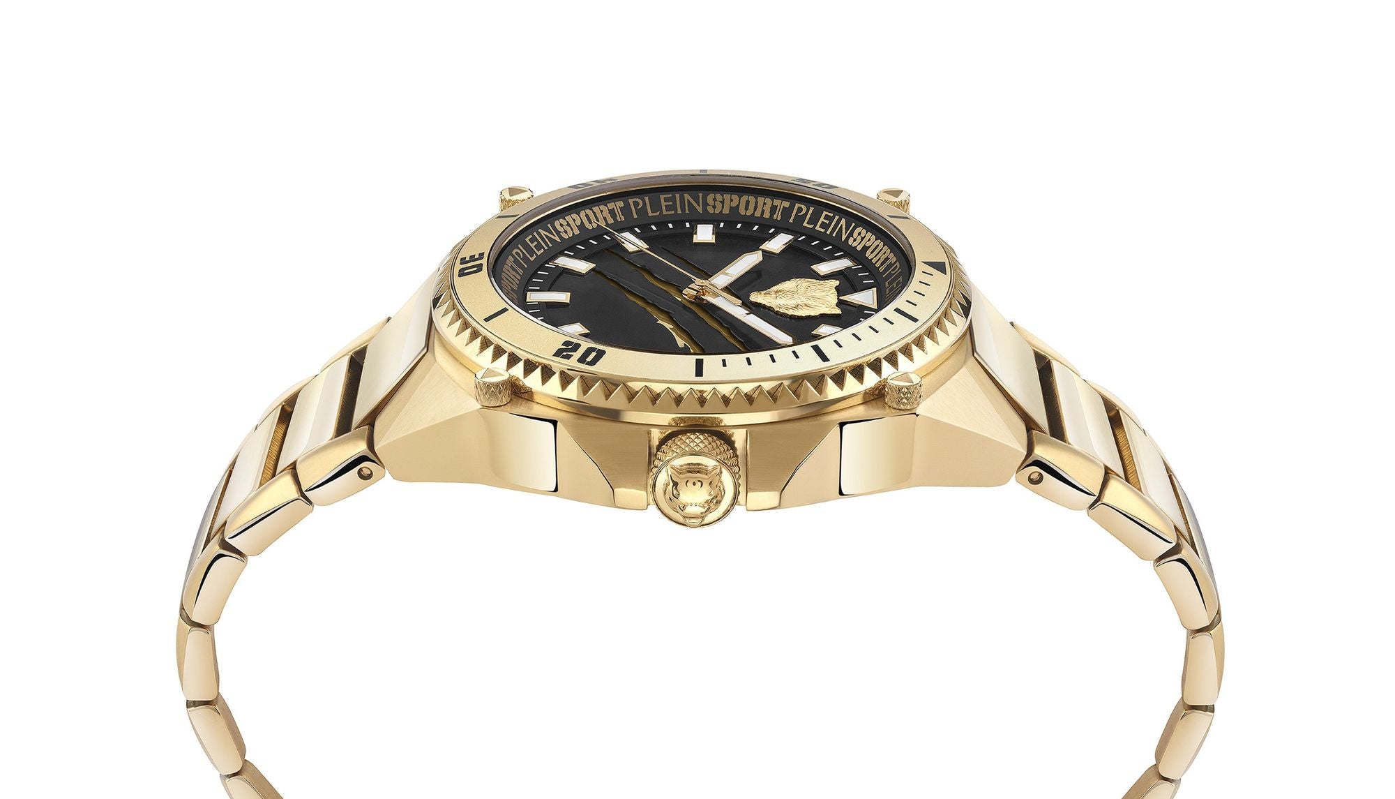 | Info: | Erleben Sie den Inbegriff von Stil und Sportlichkeit mit dem Plein Sport Thunder Force. Dieser Zeitmesser vereint die Welt der Mode und der Hochleistungszeitmessung und ist ein wahrer Beweis für die unerbittliche Leidenschaft des modernen Mannes oder der modernen Frau für Eleganz und Sportlichkeit. Das Kissengehäuse weist die charakteristischen Elemente der Marke auf, wie das Kratzdetail in der Mitte des Zifferblatts und den majestätischen Tigerkopf bei 12 Uhr. Lassen Sie Ihre Leidenschaft durch jedes Ticken des Sekundenzeigers strahlen. |