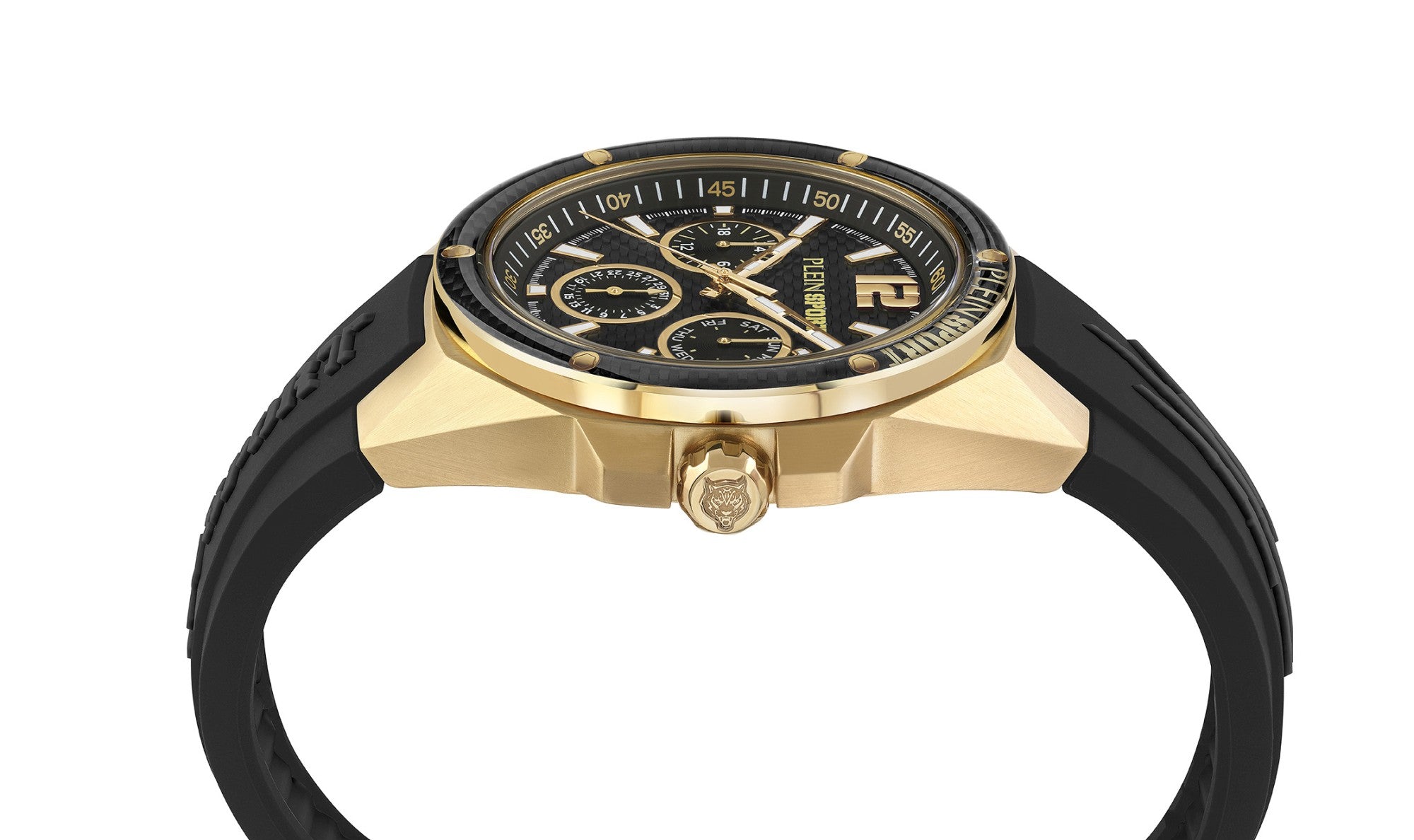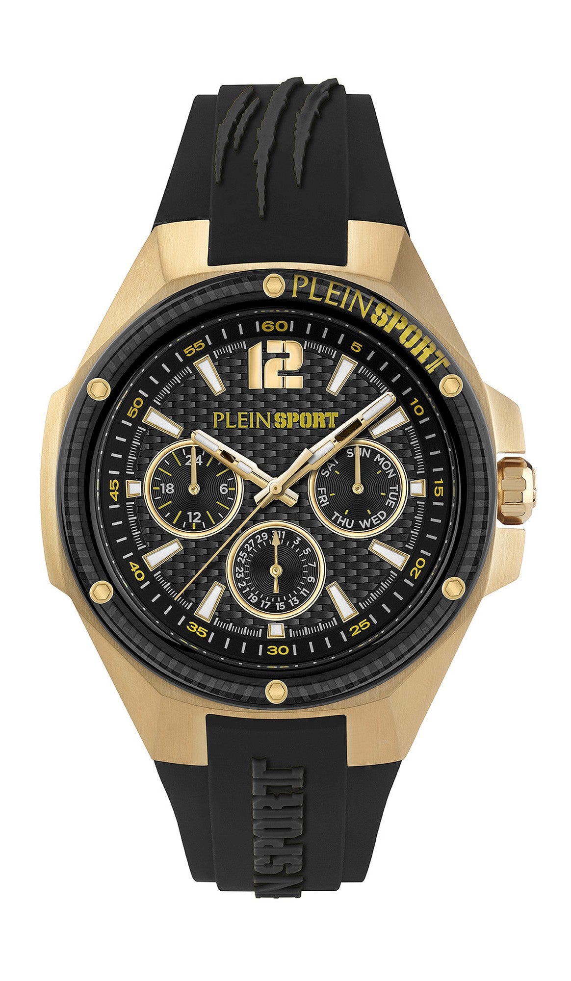 | Info: | Meistern Sie jeden Moment mit der Tigermaster Pro, einer Uhr, die Präzision mit innovativem Design verbindet. Mit ihrem markanten Zifferblatt in Carbonoptik strahlt diese Uhr eine sportliche und zugleich edle Ästhetik aus. Die Multifunktionszähler bieten eine 24-Stunden-Anzeige sowie Tages-, Wochen- und Monatsanzeigen und ermöglichen so die volle Kontrolle über Ihren Terminkalender. Das ikonische Plein Sport-Logo ziert das Zifferblatt, während das Silikonarmband mit dynamischen Kratzdetails für einen robusten und modernen Touch sorgt. |