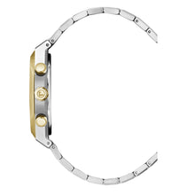| Gehäuse: | Edelstahlgehäuse bicolor, Lünette goldfarben, Durchmesser : ca. 4,0 cm, Stärke: ca. 1,1 cm, Gewicht: ca. 145 Gramm |