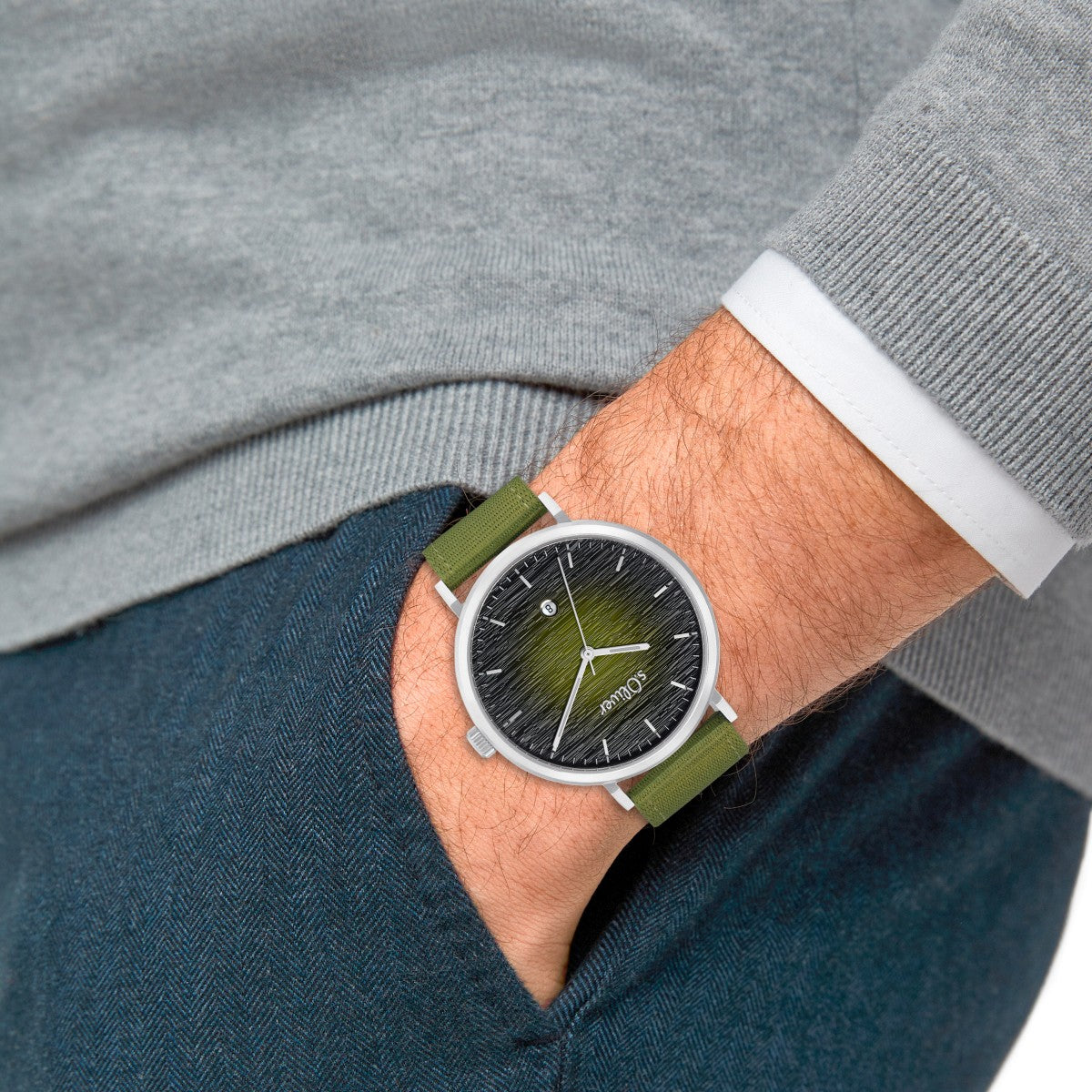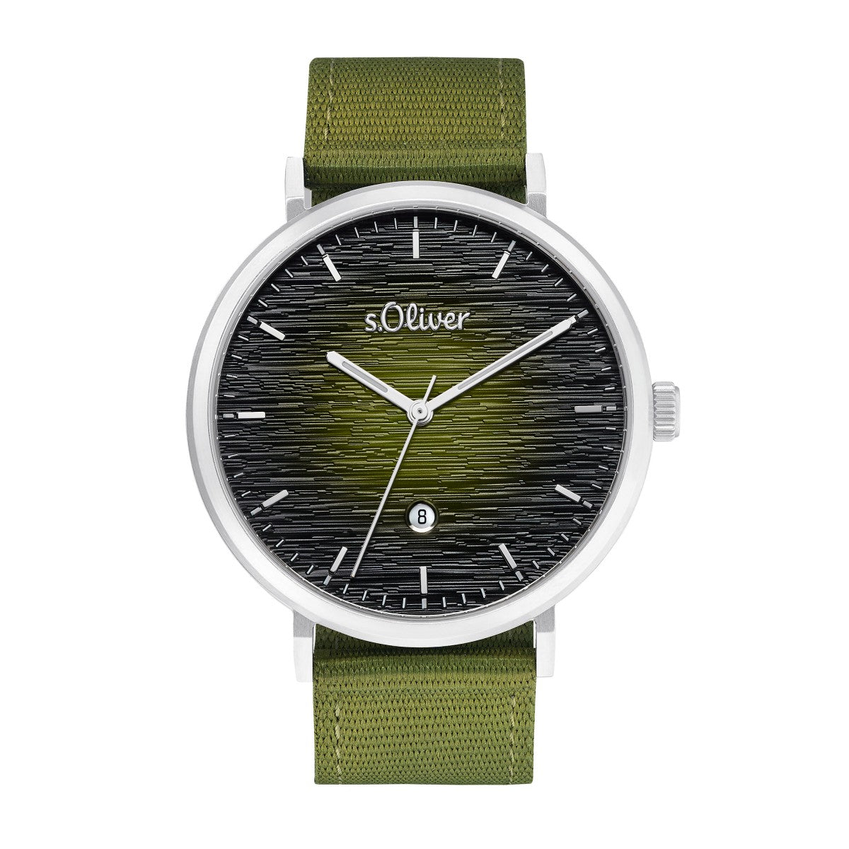 | Info: | Herren-Armbanduhr von s.Oliver. Diese trendige Armbanduhr für Herren von s.Oliver lässt sich besonders gerne zum Alltags-Outfit kombinieren. Der Zeitmesser für Männer zeigt sich im ganz besonderen Ombré-Look. Das Gehäuse der Uhr Herren wurde aus robustem, kratzfestem Edelstahl gefertigt. Das Armband mit einer Länge von 24,5 cm besteht aus pflegeleichtem Nylon. Die Herrenuhr ist versehen mir einem praktischen Dornverschluss, mit dem du ganz einfach die Länge einstellen kannst. Das Armband der s.Oliver watch for men präsentiert sich in kräftigem Grün, wohingegen das Ziffernblatt dieser Armband-Uhr-Herren einen coolen Farbverlauf aufweist. Die Holzoptik des Ziffernblatts ist das i-Tüpfelchen des Designs. Die Armbanduhr Edelstahl Herren verfügt über eine praktische Datumsanzeige. Für die reibungslose Funktionalität dieses Herren-Accessoires sorgt ein hochwertiges Citizen Miyota Uhrwerk. Die Uhr Herren grün ist wasserdicht bis zu einer Tiefe von 3 Bar. Dennoch empfiehlt es sich, den Zeitmesser vor dem Schwimmen und weiteren Aktivitäten im Wasser abzulegen. |
