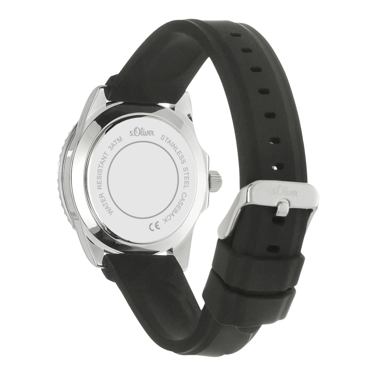 • Band: schwarzes Silikonarmband mit Dornschließe, Länge 75 x 125 mm, Breite: 22 mm