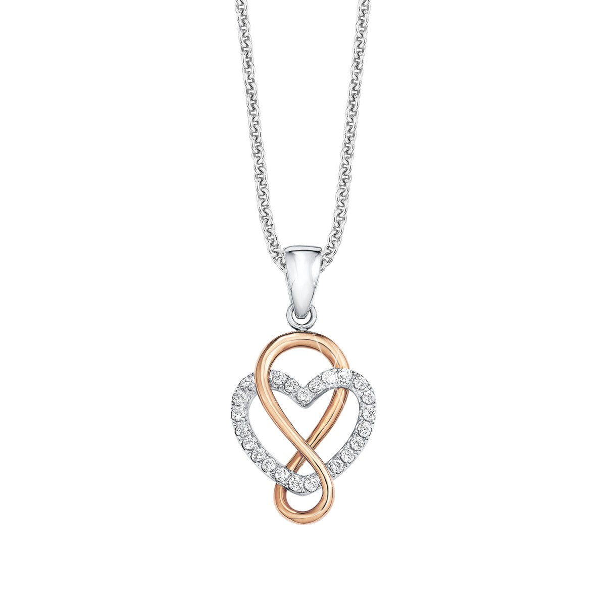 | Material: | Damen Kette / Collier aus Sterling Silber 925 bicolor (18 Karat Teilrosévergoldet), Anhänger verziert mit Zirkonia Elemente |