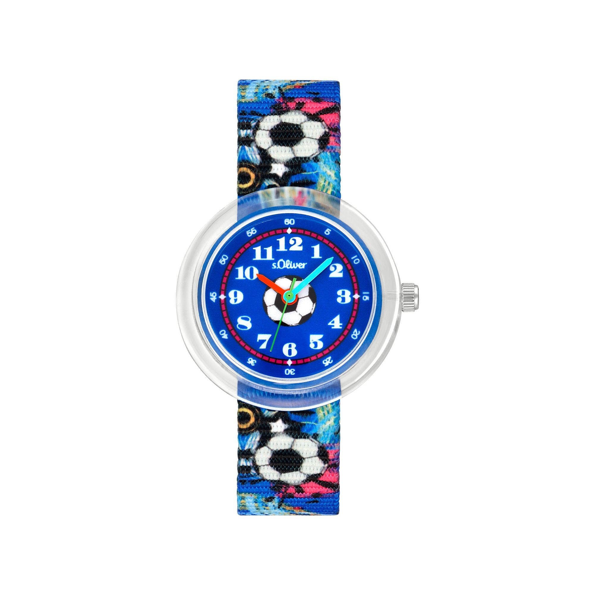 | Info: | Ein cooles Accessoire in kräftigen Farben ist diese sportliche Armbanduhr für Jungs von s.Oliver. Das Armband aus robustem Nylon ist ebenso wie das Ziffernblatt inklusive Sekundenzeiger mit einem tollen Print versehen. Das Gehäuse aus robustem Kunststoff passt zum restlichen Design der Jungenuhr und ist zusätzlich nach Belieben gravierbar - so entsteht ein ganz persönliches Accessoire. Die arabischen Zahlen sind gut leserlich auf dem Ziffernblatt abgebildet, sodass der Träger mühelos die Uhrzeit ablesen kann. Die Kinderuhr besitzt eine einfach verstellbare Dornschließe und ist wasserfest. |