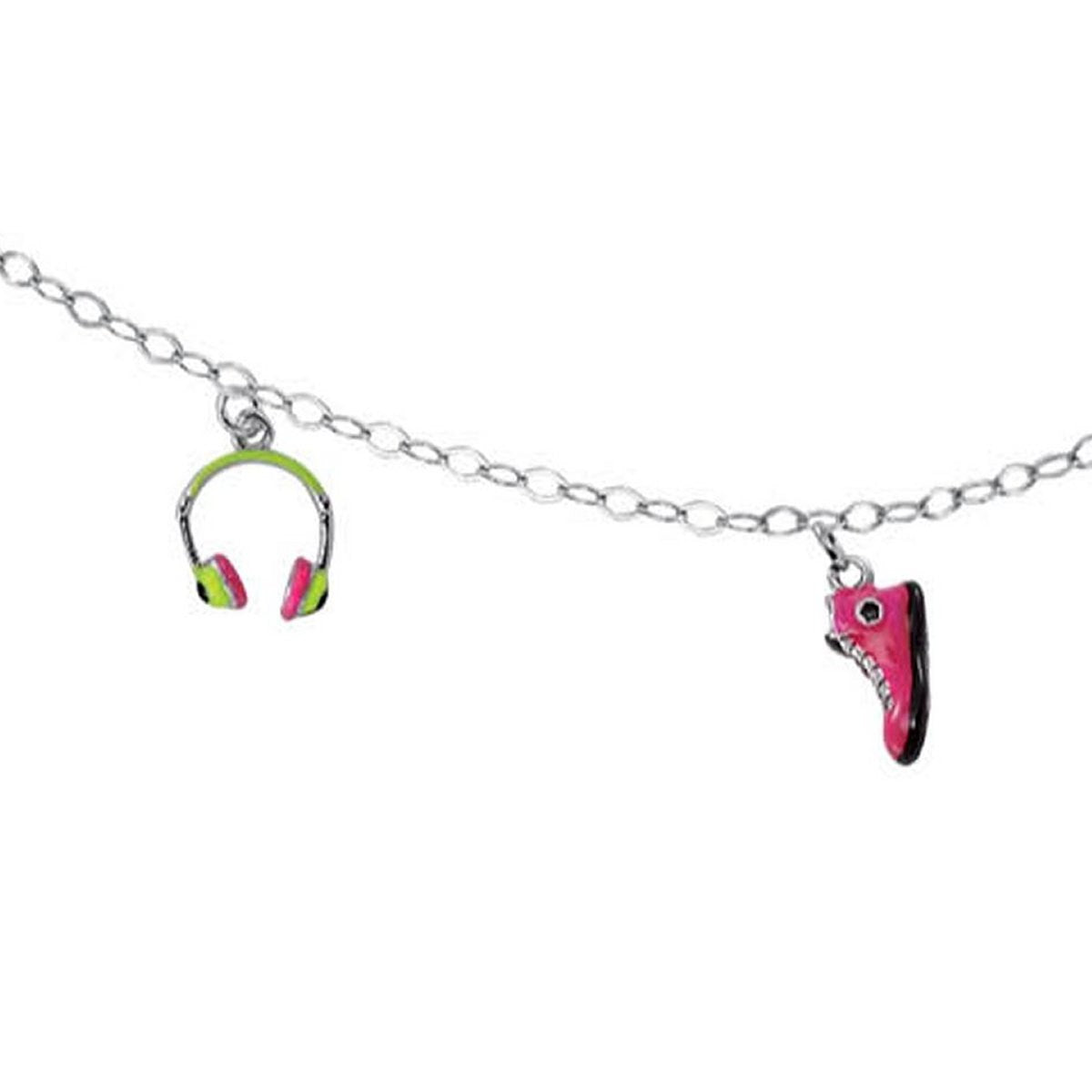 | Material: | exclusives Mädchen Armband aus 925/-Sterlingsilber rhodiniert , Anhänger sind mit Glitzer Emaille verziehrt (Farbe silber, rosa, schwarz), |