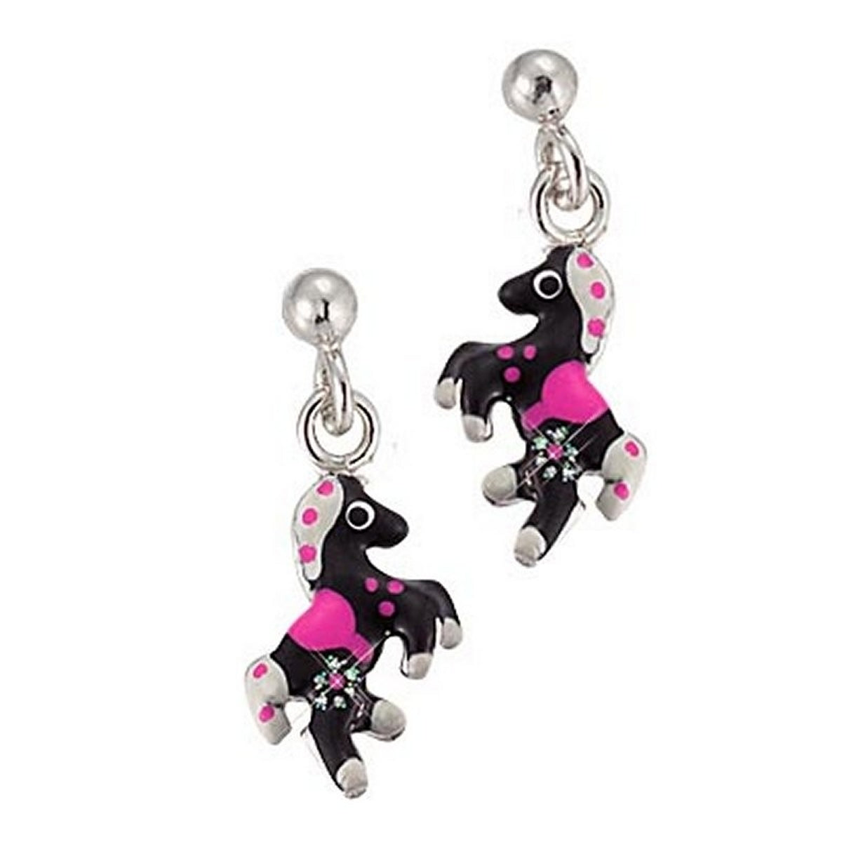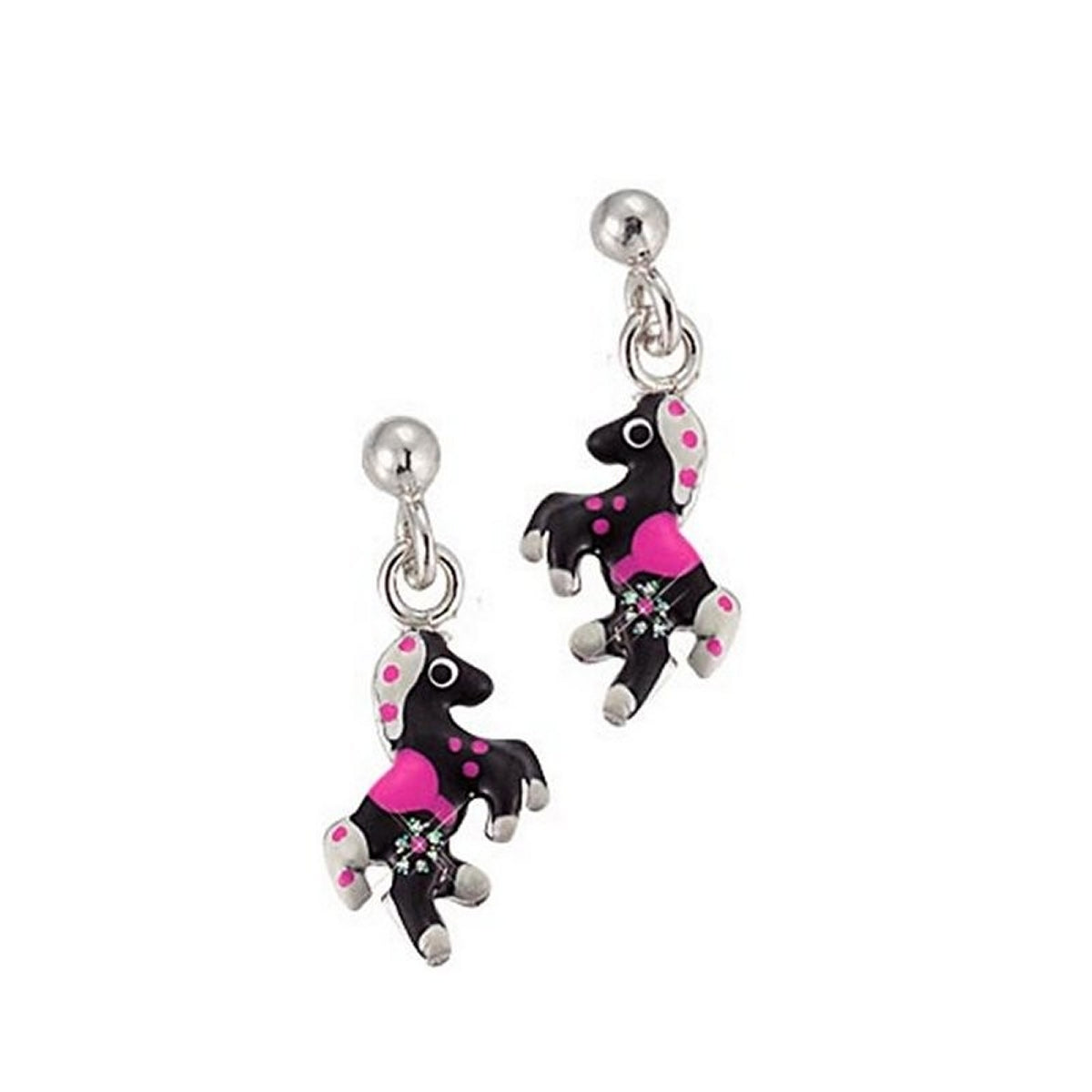 | Material: | exclusive Mädchen Ohrringe aus 925/-Sterlingsilber rhodiniert, Pferd ist mit Emaille verziehrt (Farbe schwarz, pink), |