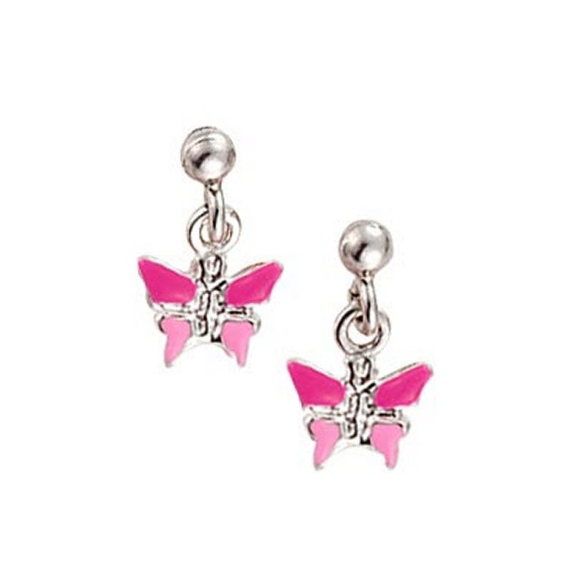 | Material: | exclusive Mädchen Ohrringe aus 925/-Sterlingsilber rhodiniert, Schmetterling ist mit Emaille verziehrt (rosa), |