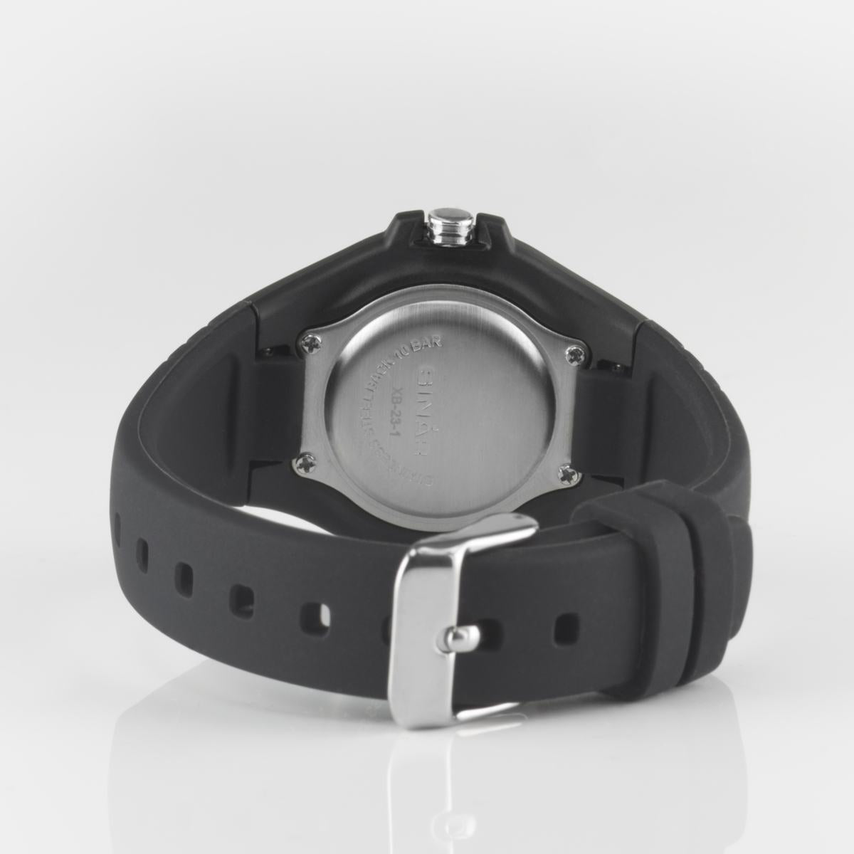 | Funktionen / Anzeigen: | • Silikonband mit sehr angenehmen Tragekomfort • Kunststoffgehäuse Ø 34 mm • Gehäuseboden aus Edelstahl • Wasserdichtigkeit 10 bar • Kunststoffglas • Quarz, analog |