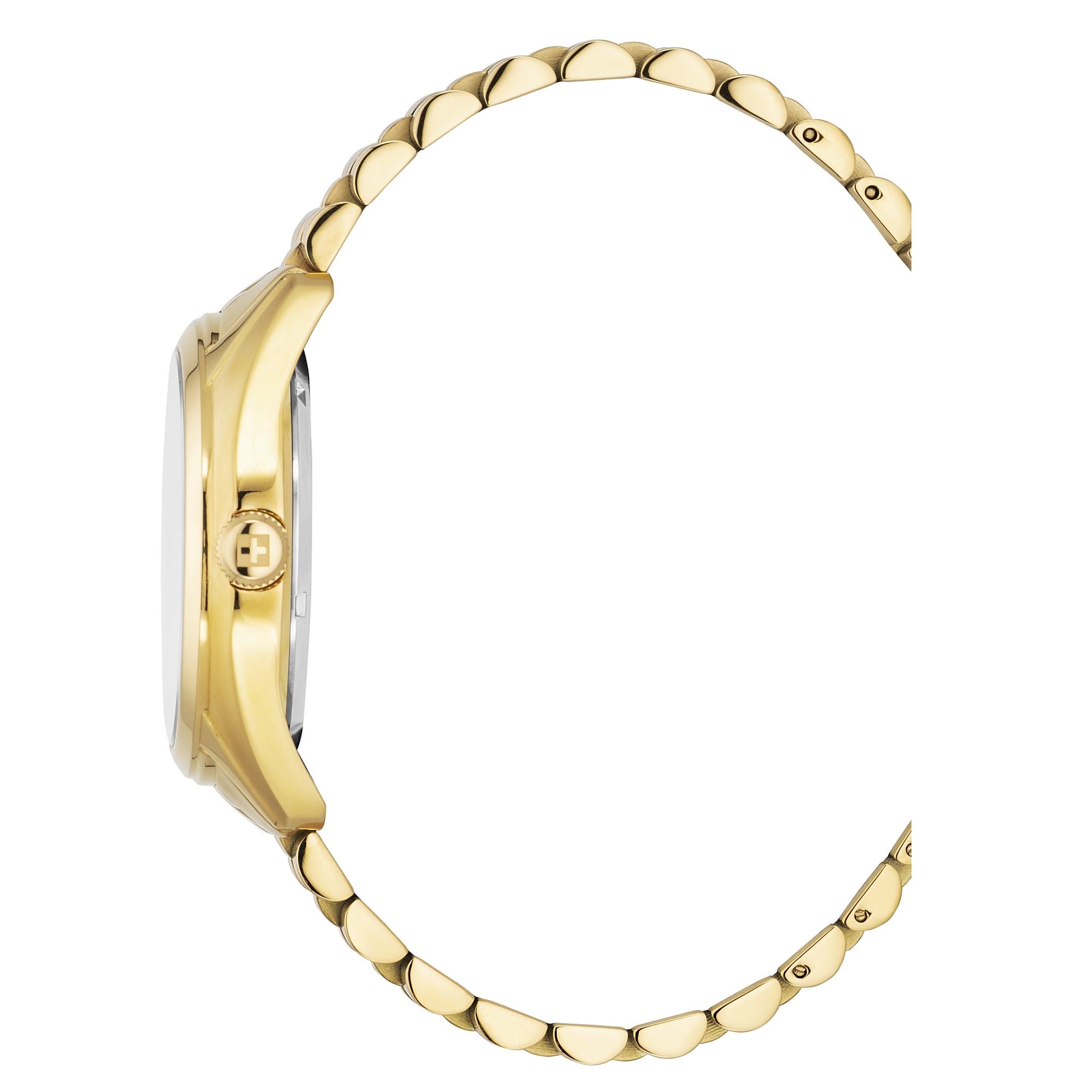 | Armband: | Edelstahlarmband goldfarben mit Butterfly-Faltschließe, Breite:ca. 2,2/2,0 cm Länge d.Uhr (Gesamtlänge): ca. 26,5 cm |