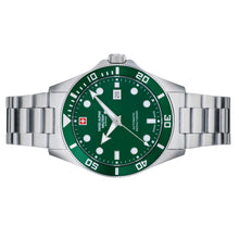 | Gehäuse: | Edelstahlgehäuse silberfarben, Lünette Grün, Durchmesser : ca. 4,4 cm, Stärke: ca. 1,27 cm, Gewicht: ca, 204 Gramm |