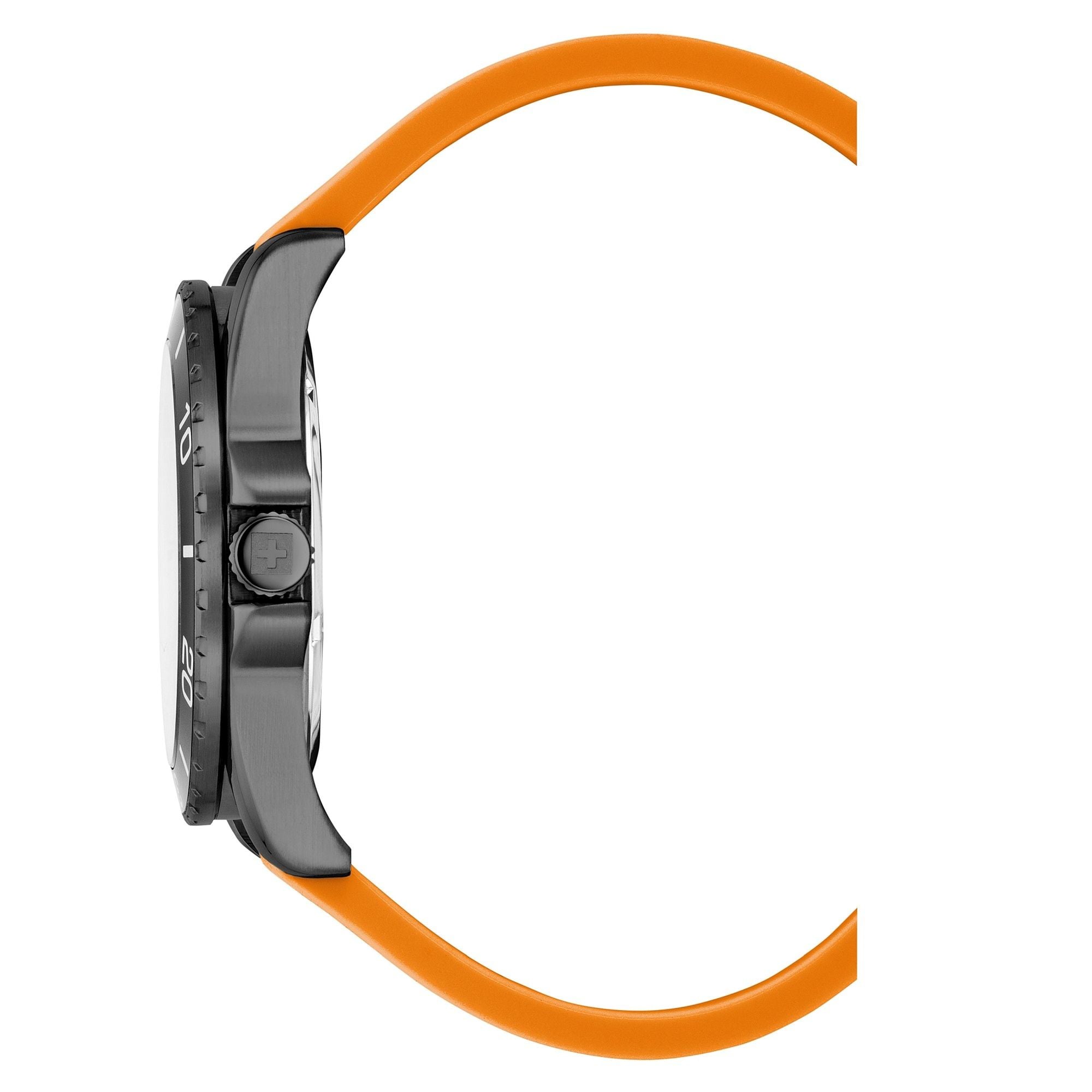 | Armband: | Silikonarmband orange mit Dornschliesse Breite:ca. 2,2/2,0 cm Länge d.Uhr (Gesamtlänge): Herren Standart |