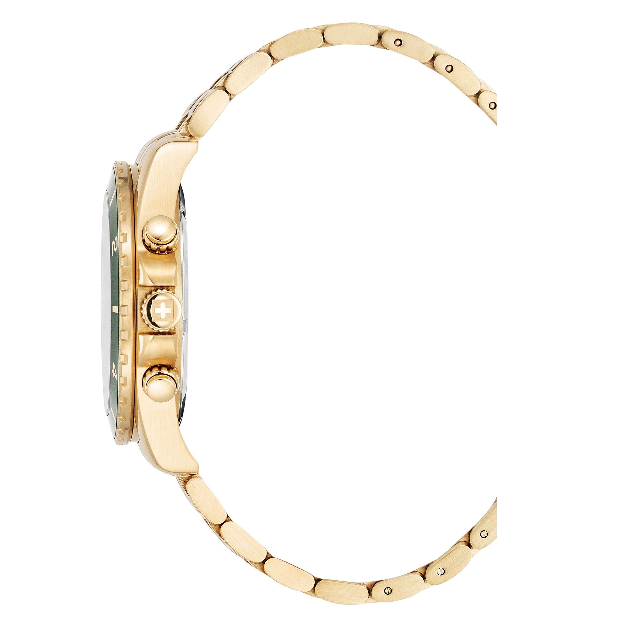 | Gehäuse: | Edelstahlgehäuse goldfarben, Lünette grün, Durchmesser : ca. 4,3 cm, Stärke: ca. 0,9 cm, Gewicht: ca, 166 Gramm |