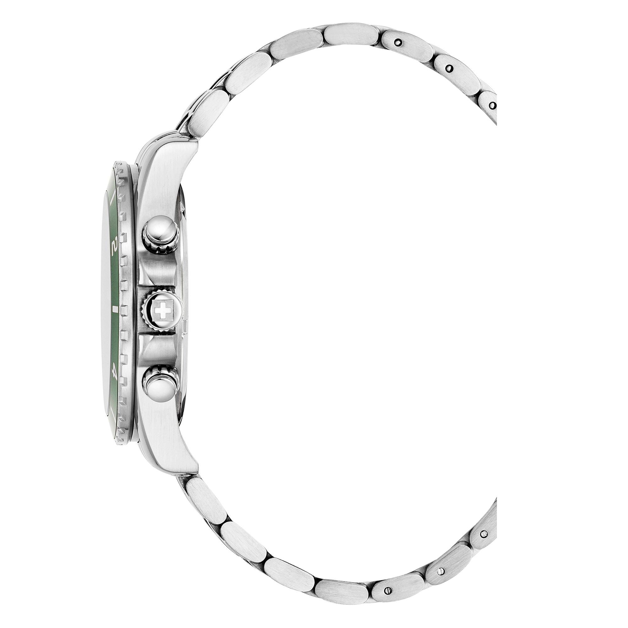 | Gehäuse: | Edelstahlgehäuse silberfarben, Lünette grün , Durchmesser : ca. 4,3 cm, Stärke: ca. 0,9 cm, Gewicht: ca, 166 Gramm |