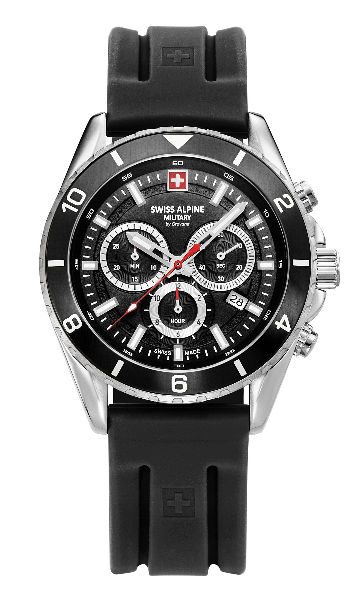 Swiss Alpine Military Herren Uhr Analog Quarz Chronograph 7034.9837SAM Silikon