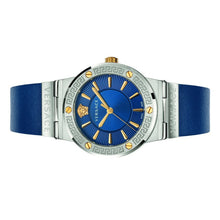 | Zifferblatt: | Analoganzeige, Farbe: blau mit Versace Logo |