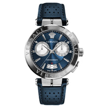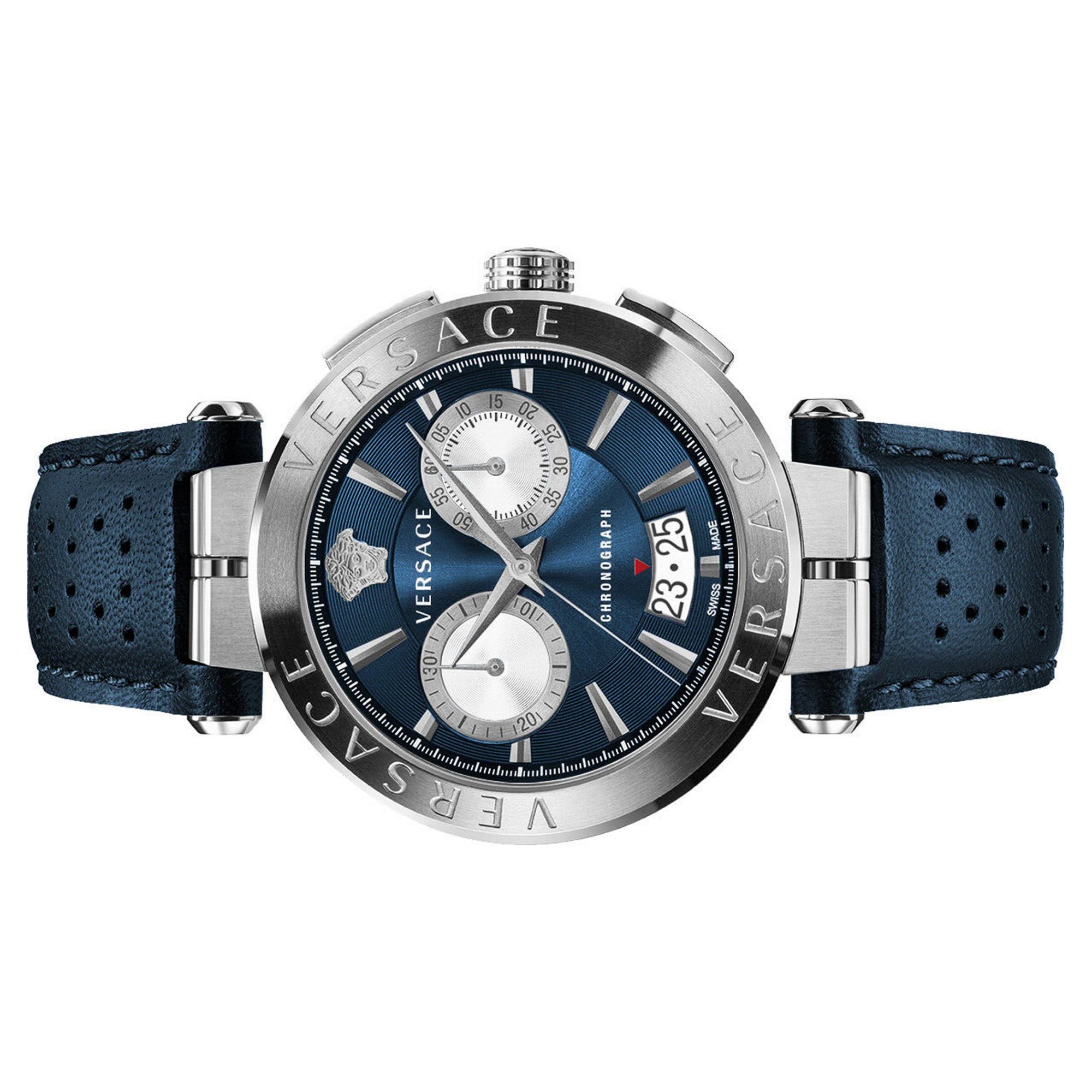 | Zifferblatt: | Analoganzeige, Farbe: blau mit Versace Logo, silberfarbige Zeiger und Indexe |