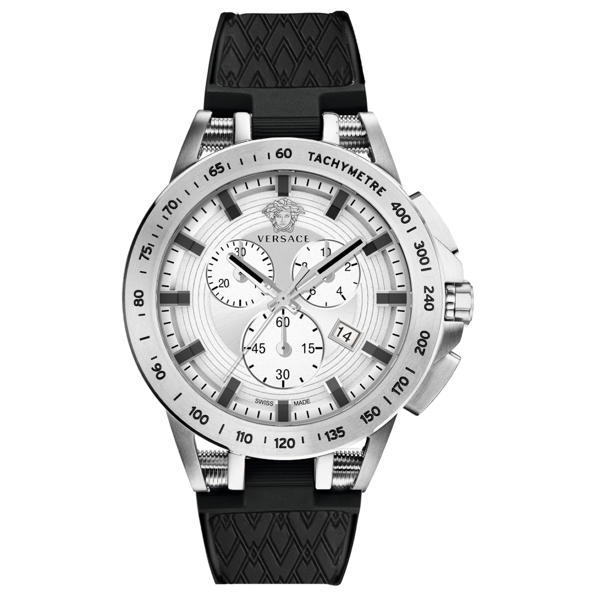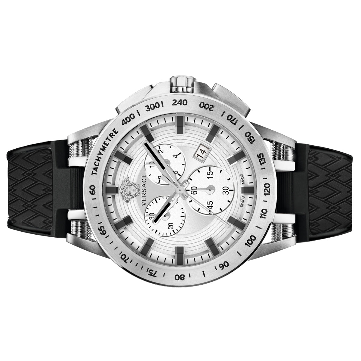 | Zifferblatt: | Analoganzeige, Farbe: silberfarben mit Versace Logo |