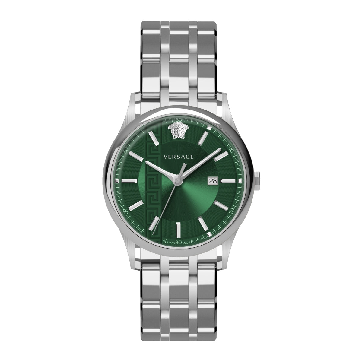 | Zifferblatt: | Analoganzeige, Farbe: grün mit Versace Logo |