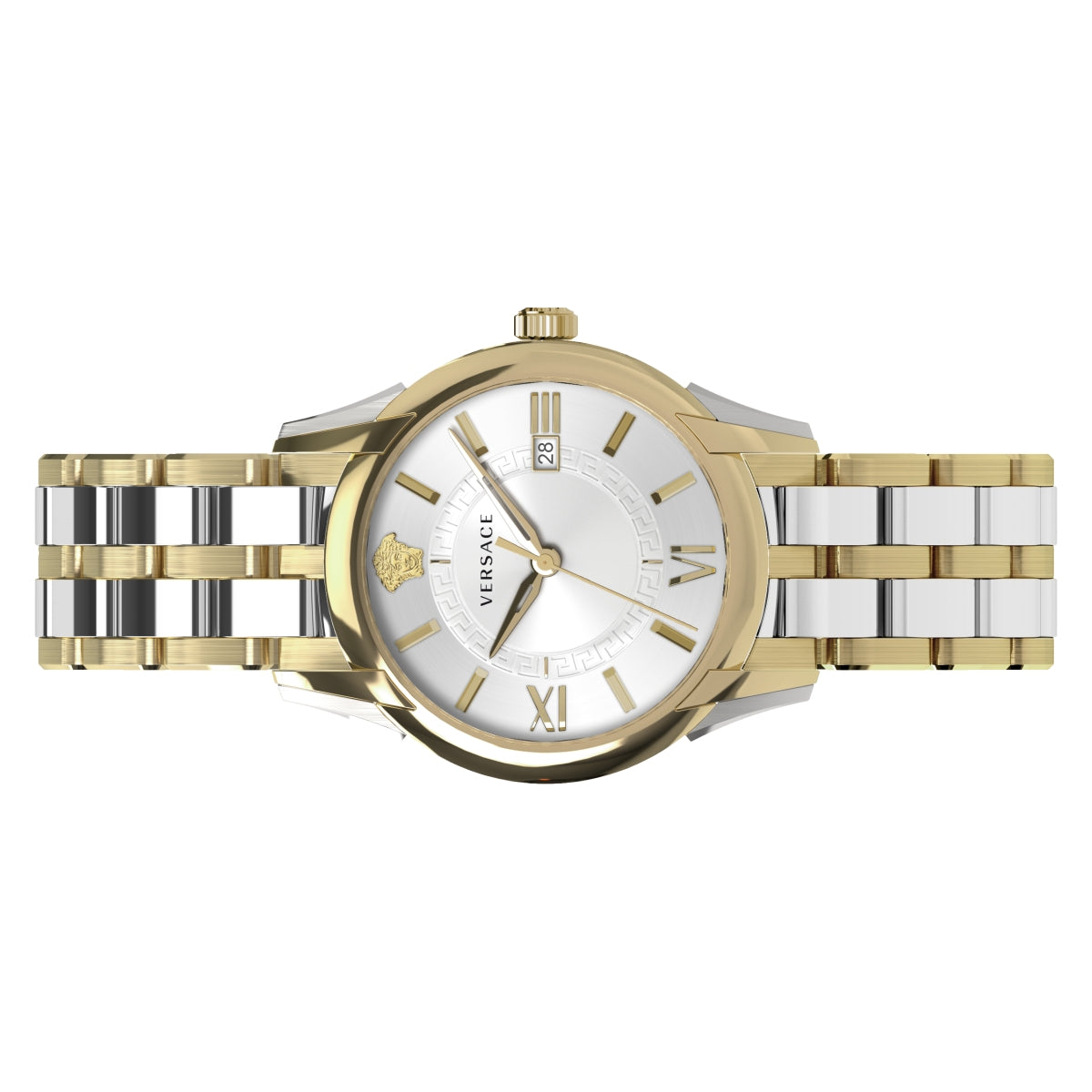 | Zifferblatt: | Analoganzeige, Farbe: silber mit Versace Logo |