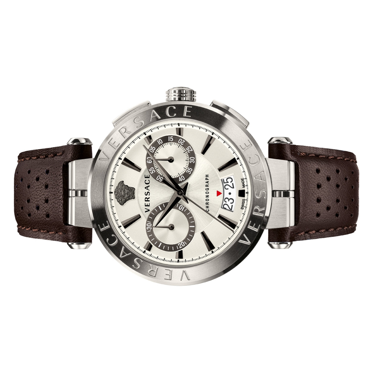 | Zifferblatt: | Analoganzeige, Farbe: silber mit Versace Logo |