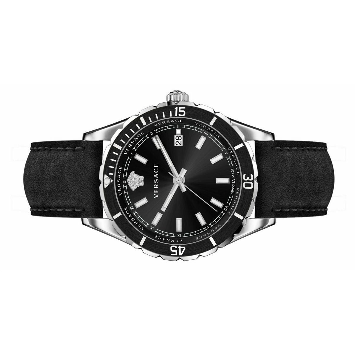 | Zifferblatt: | Analoganzeige, Farbe: schwarz mit Versace Logo |