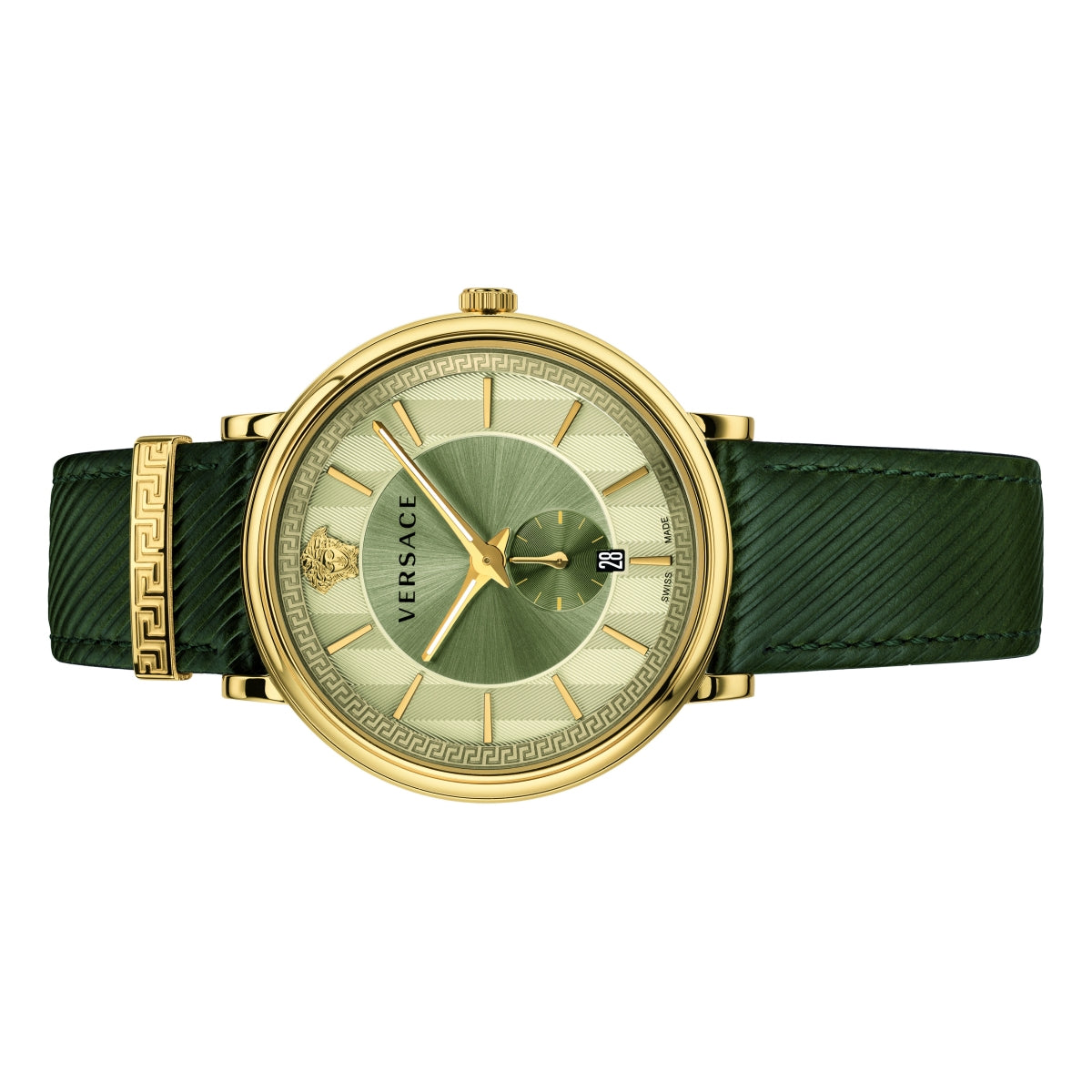 | Zifferblatt: | Analoganzeige, Farbe: goldfarben mit Versace Logo |